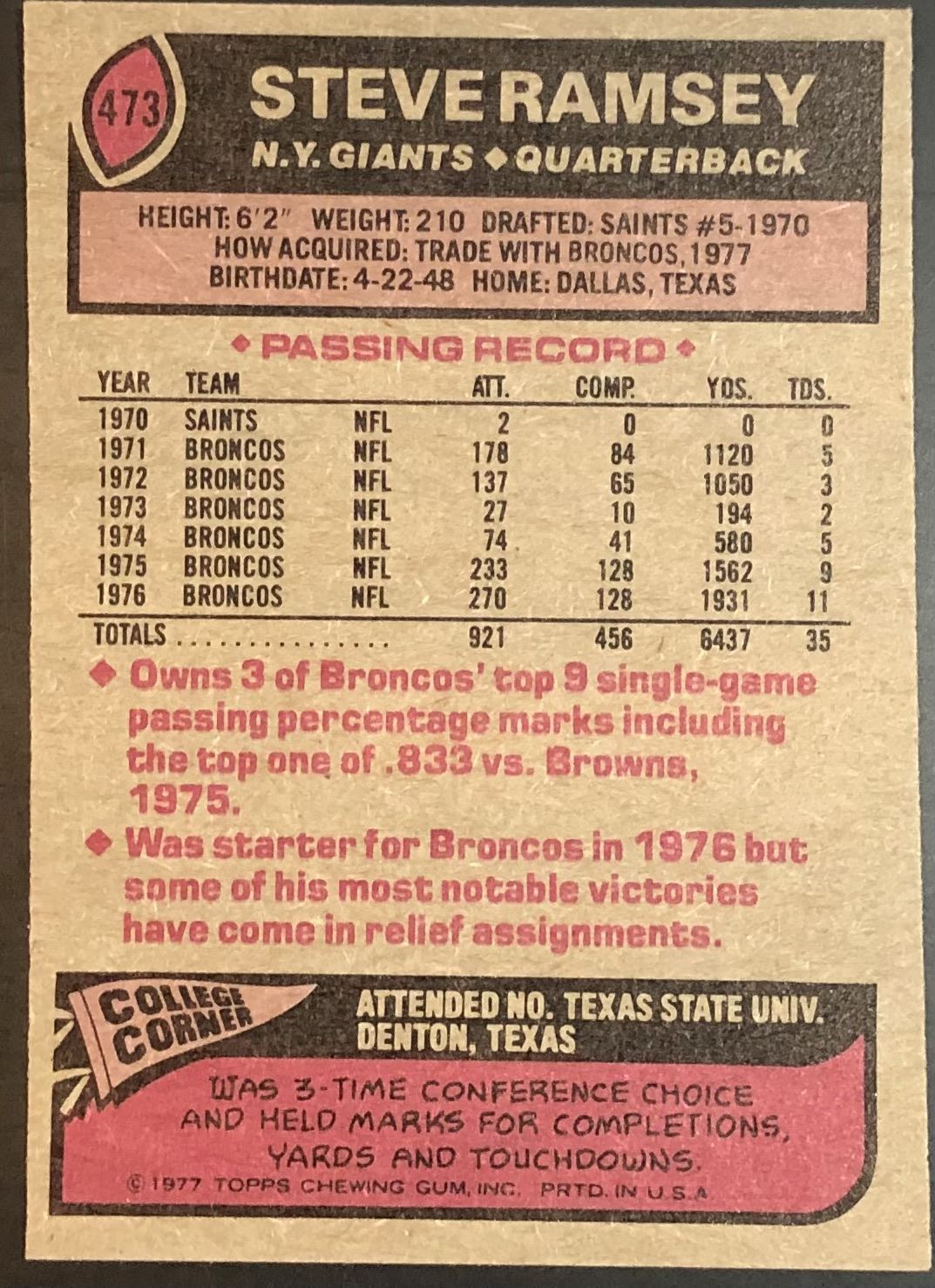 Lot 580 1977 TOPPS STEVE RAMSEY