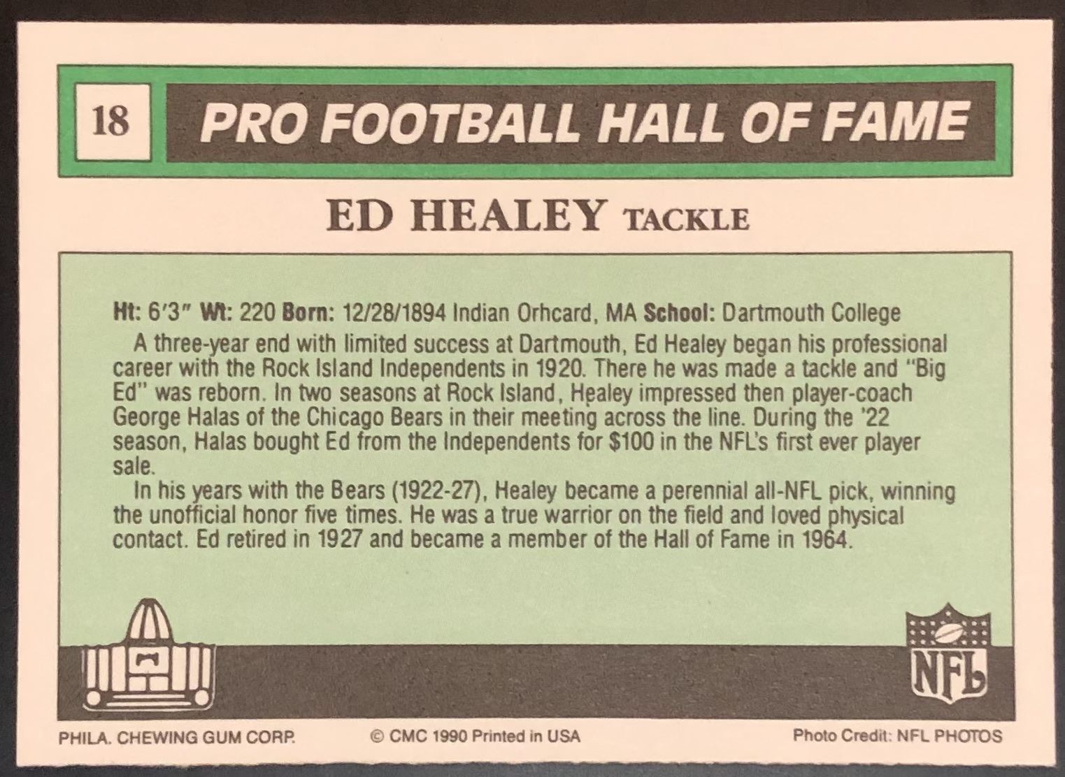 Card #18 NFL, football, hall of fame, Philadelphia Chewing Gum