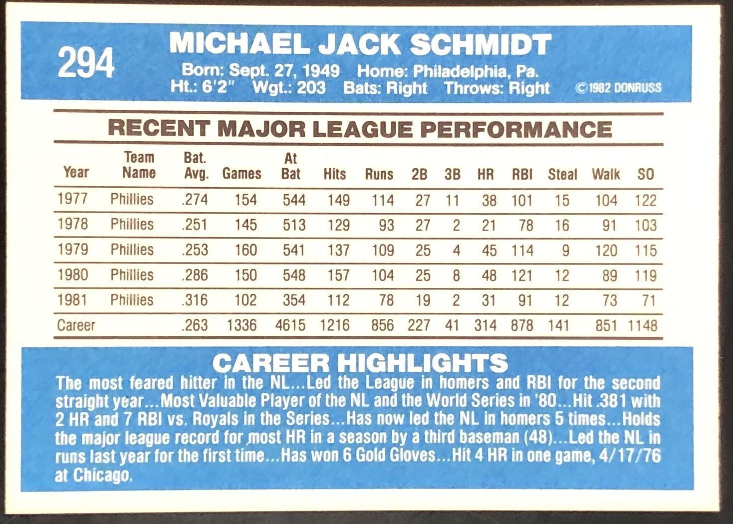 Lot 611 1982 DONRUSS MIKE SCHMIDT (HOF)