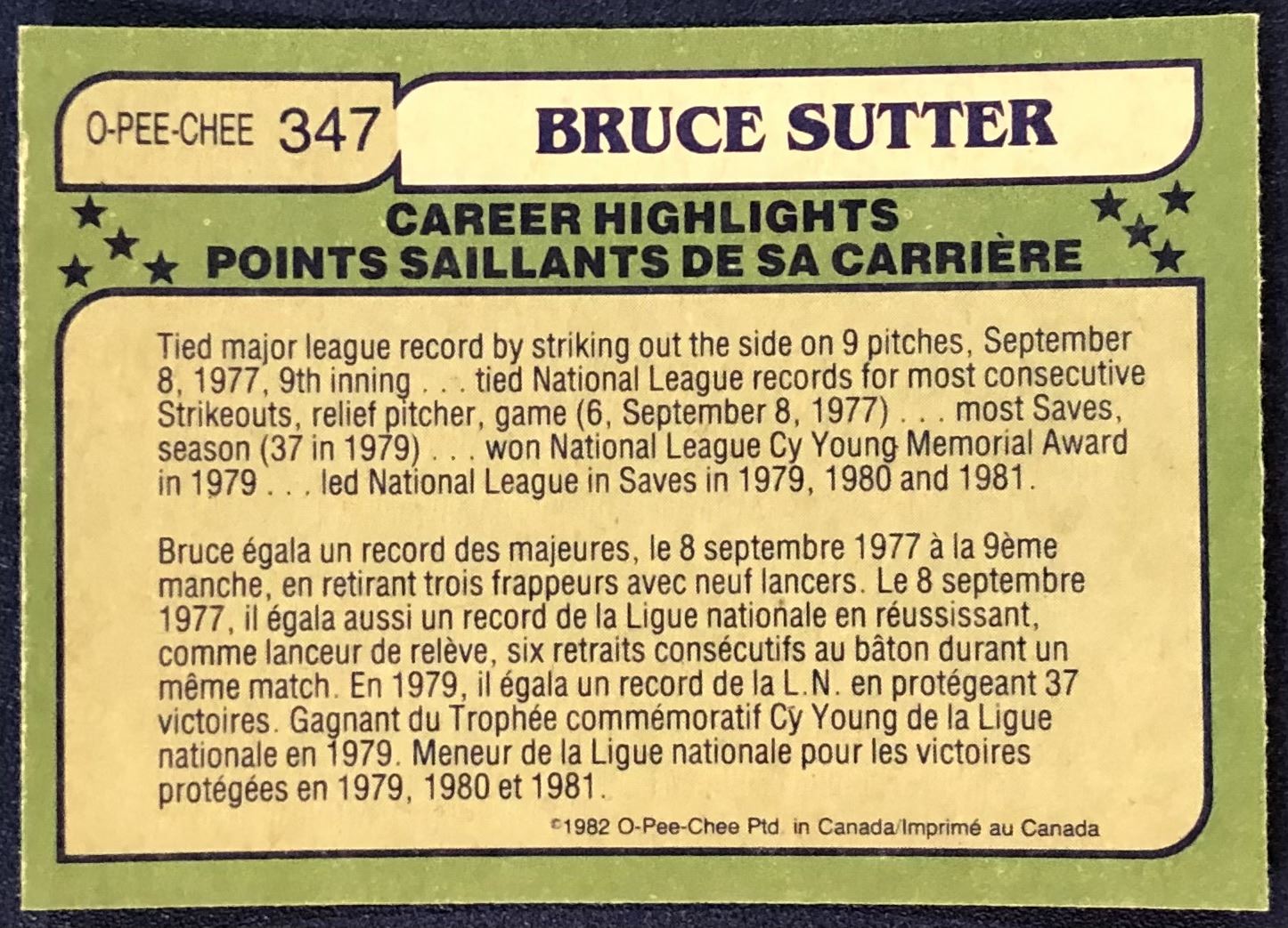 Lot 616 1982 O-PEE-CHEE BASEBALL BRUCE SUTTER (HOF)