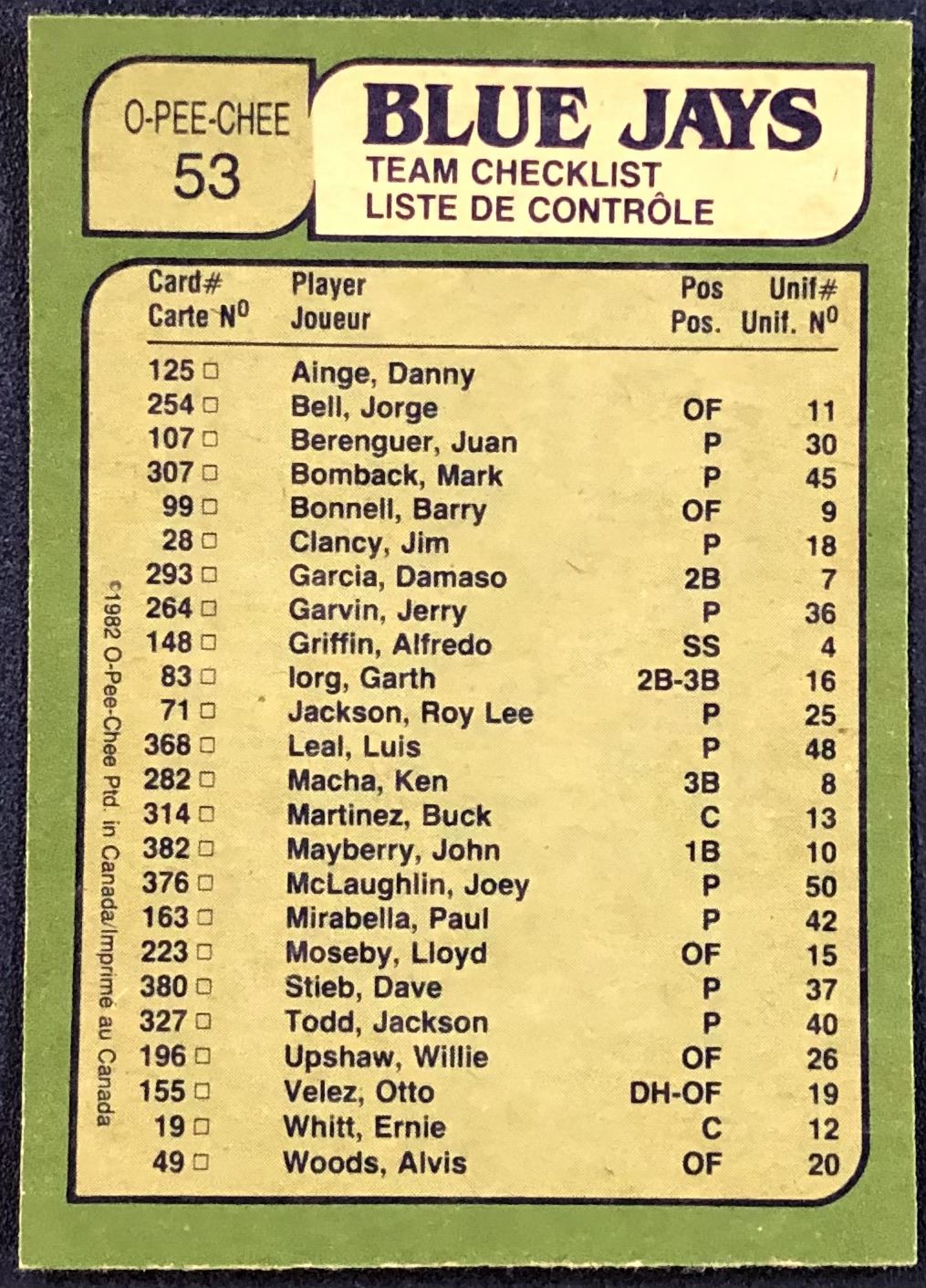 Lot 627 1982 O-PEE-CHEE BASEBALL DAVE STIEB