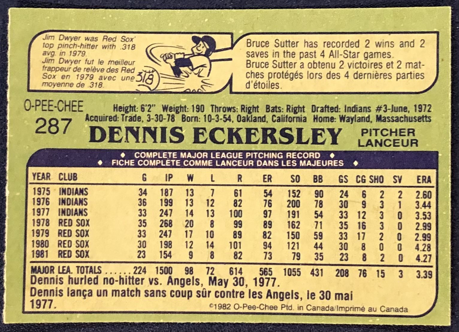 Lot 631 1982 O-PEE-CHEE BASEBALL DENNIS ECKERSLEY (HOF)