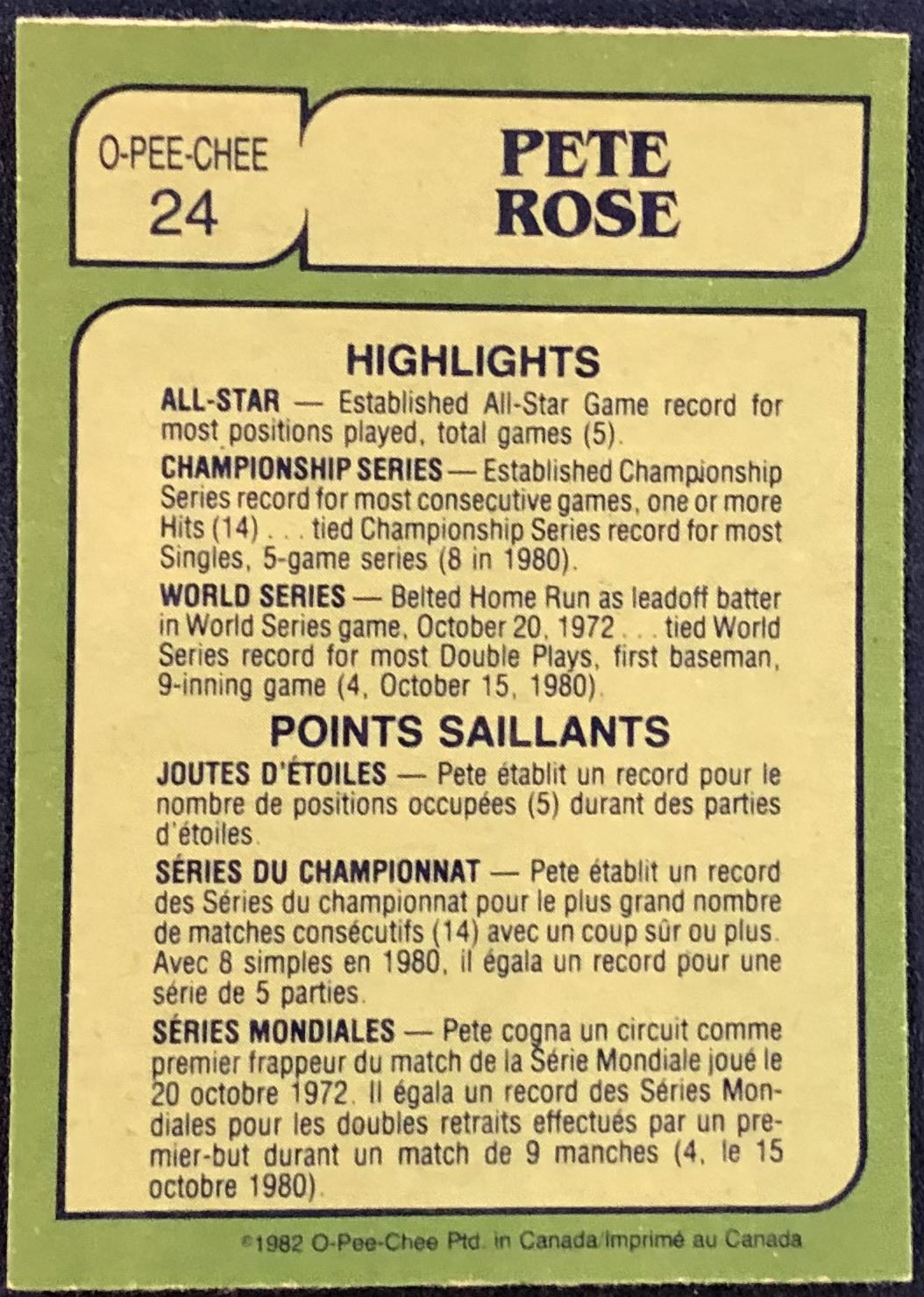 Lot 661 1982 O-PEE-CHEE BASEBALL PETE ROSE