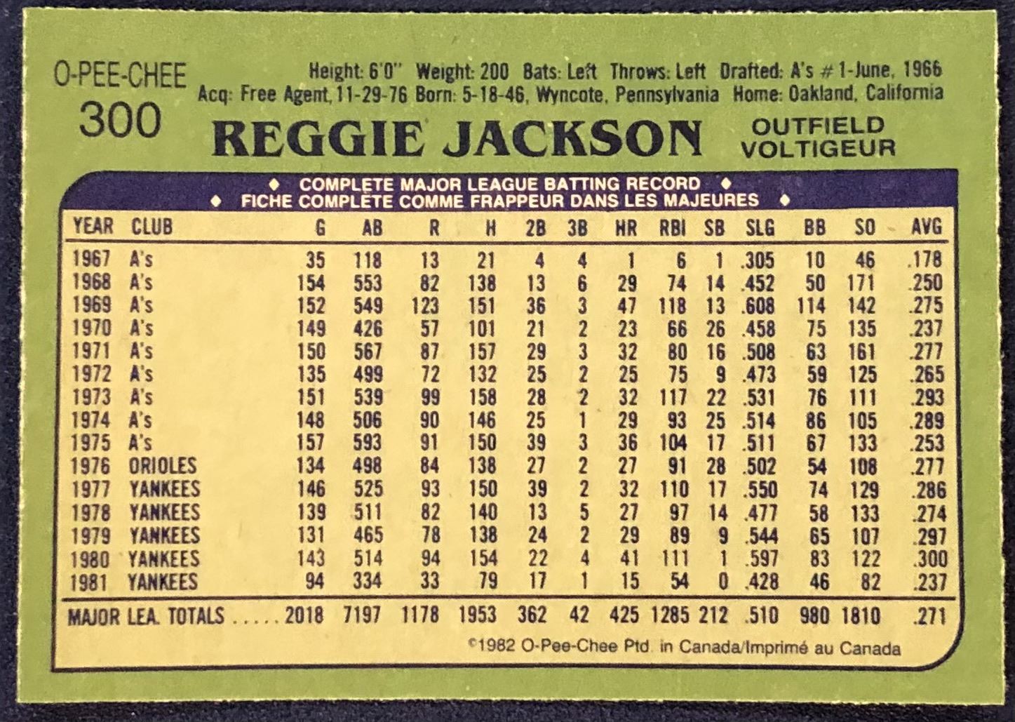 Lot 664 1982 O-PEE-CHEE BASEBALL REGGIE JACKSON (HOF)