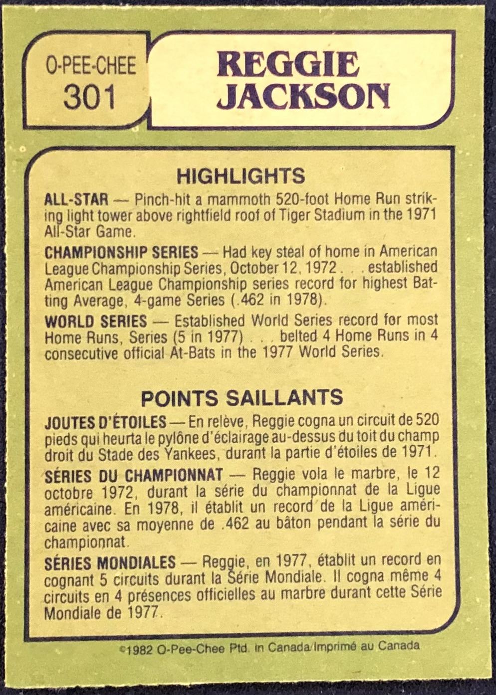 Lot 665 1982 O-PEE-CHEE BASEBALL REGGIE JACKSON (HOF)