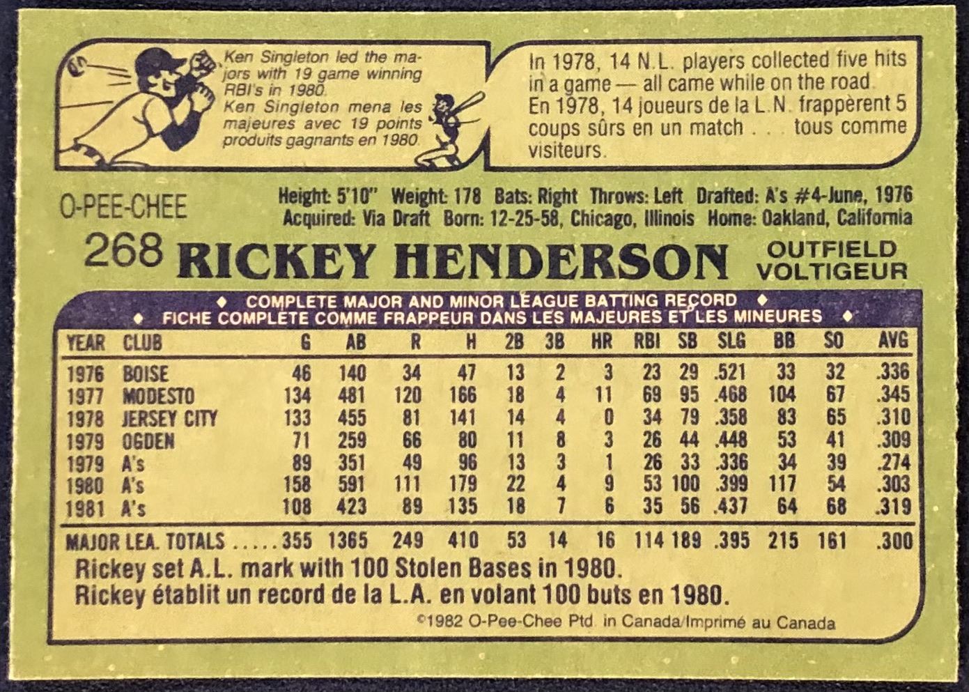 Lot 666 1982 O-PEE-CHEE BASEBALL RICKEY HENDERSON (HOF)