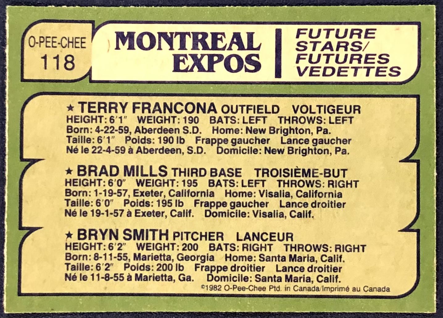 Lot 676 1982 O-PEE-CHEE BASEBALL TERRY FRANCONA ROOKIE CARD