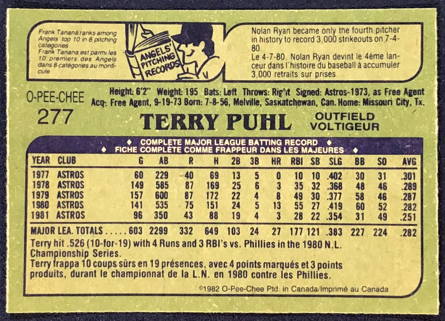 Lot 677 1982 O-PEE-CHEE BASEBALL TERRY PUHL