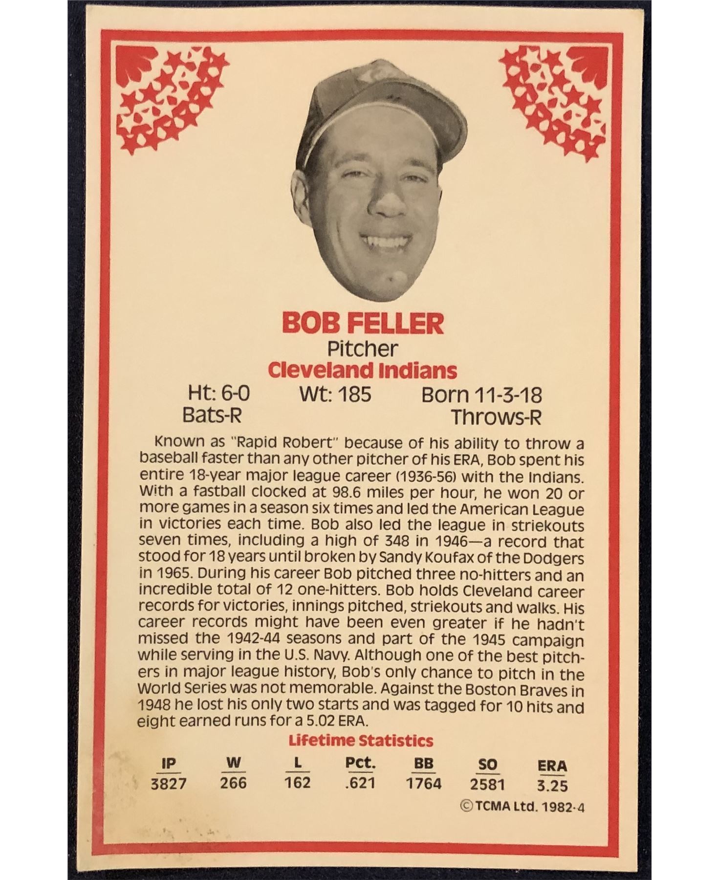 Lot 685 1982 TCMA BOB FELLER (HOF)