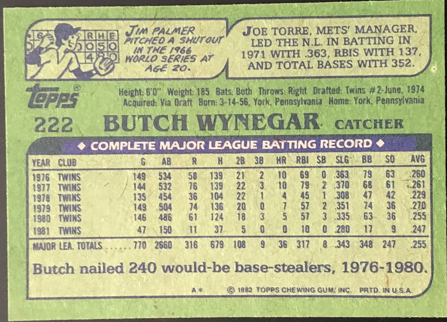 Lot 688 1982 TOPPS BUTCH WYNEGAR ROOKIE CARD