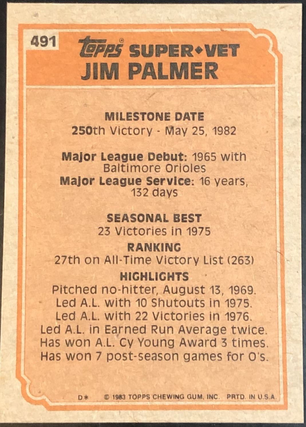 Lot 704 1983 TOPPS JIM PALMER (HOF)
