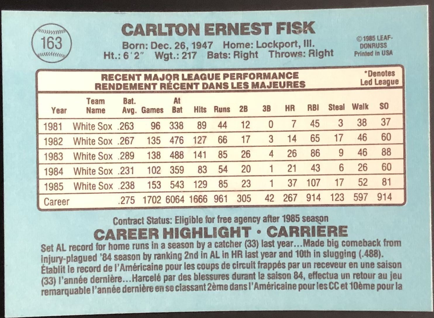 Lot 714 1986 LEAF CARLTON FISK (HOF)