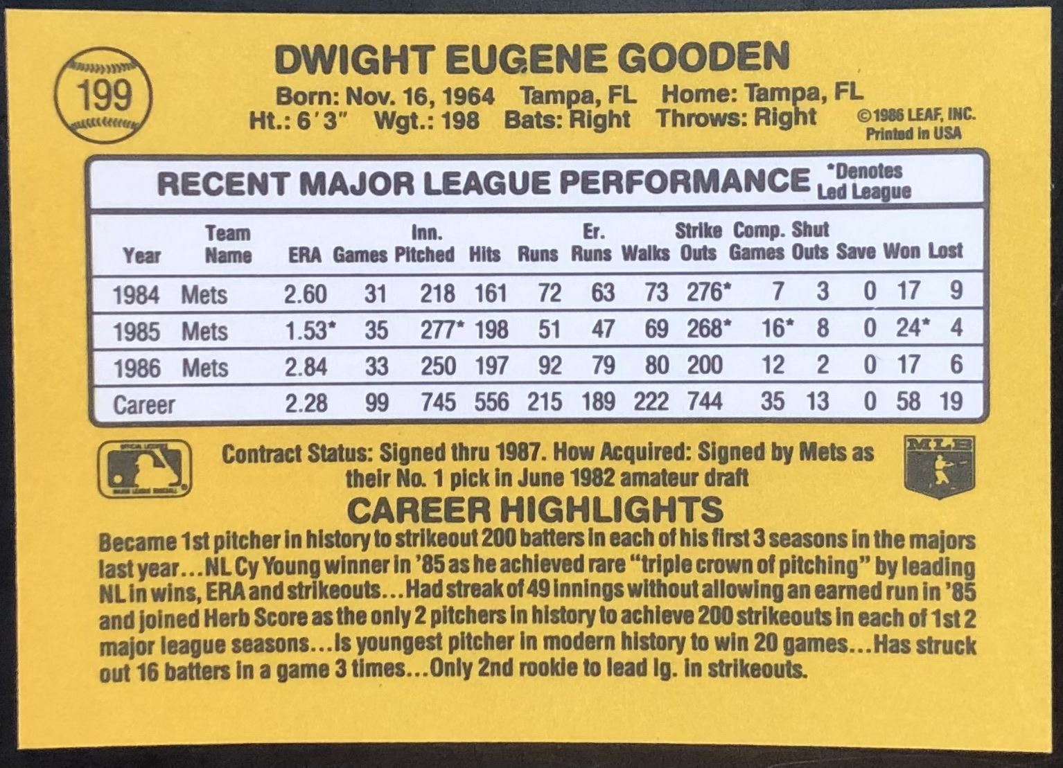 Lot 719 1987 DONRUSS DWIGHT GOODEN