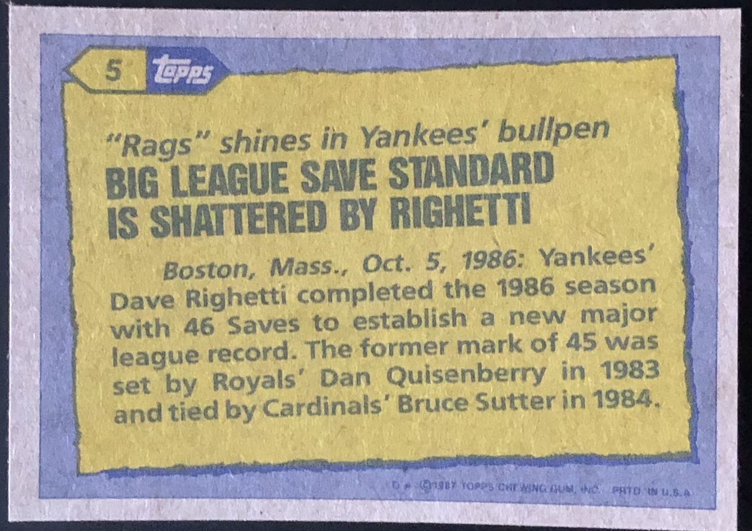 Lot 723 1987 TOPPS DAVE RIGHETTI (HOF)