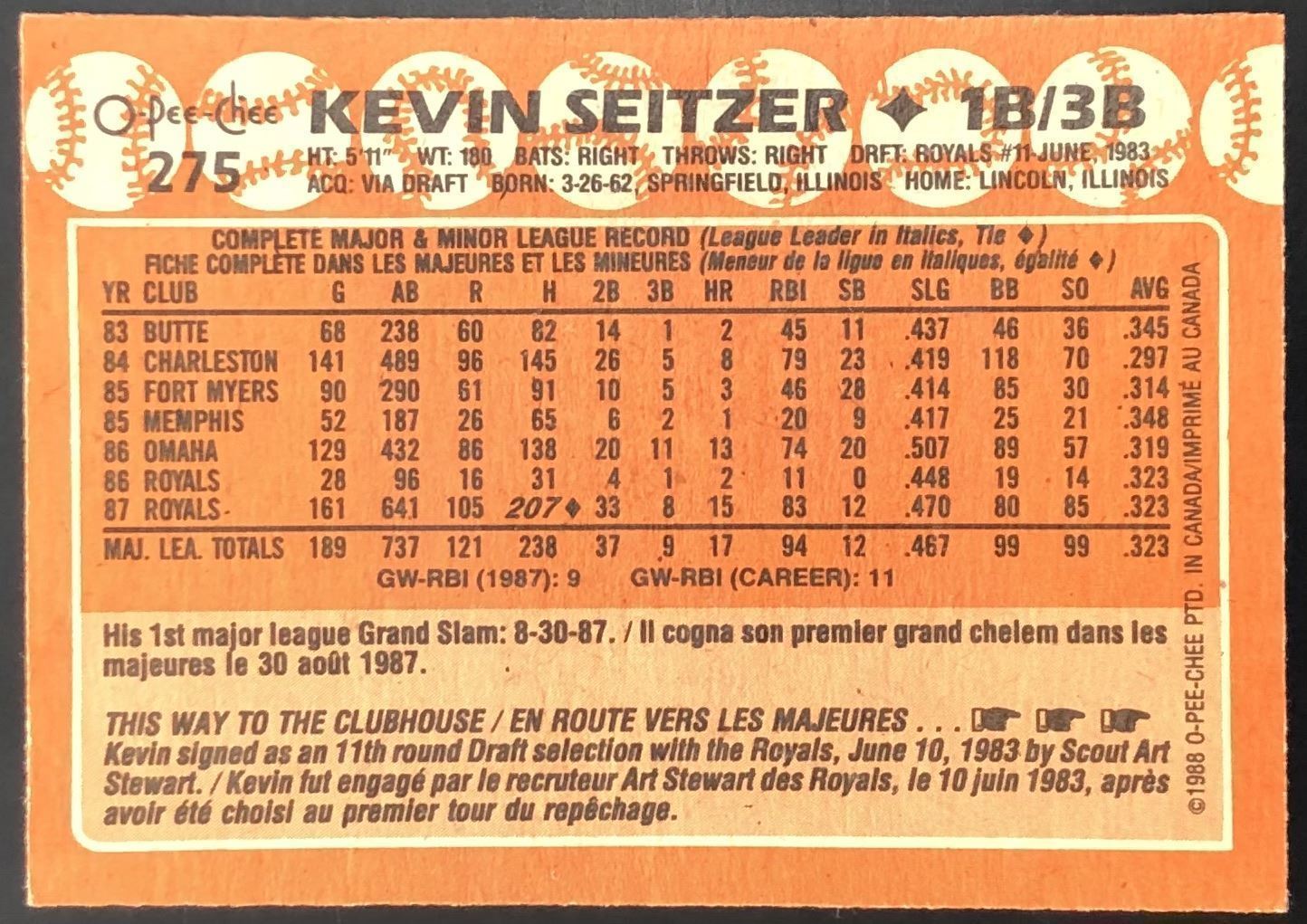 Lot 730 1988 O-PEE-CHEE KEVIN SEITZER ROOKIE CARD