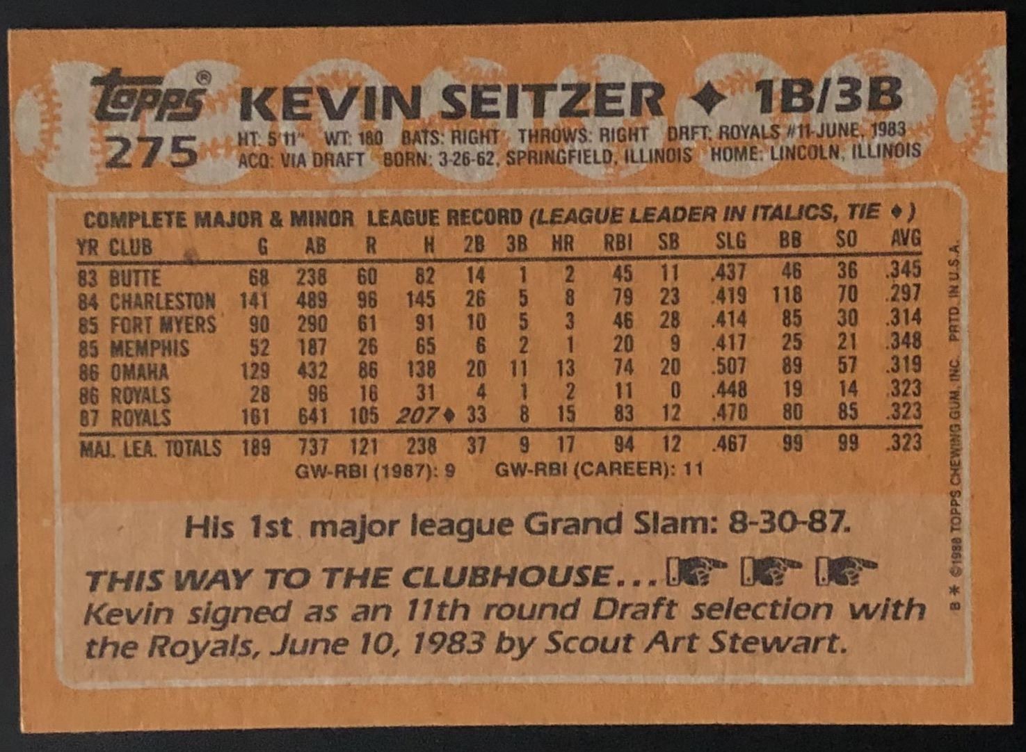 Lot 737 1988 TOPPS KEVIN SEITZER ROOKIE CARD