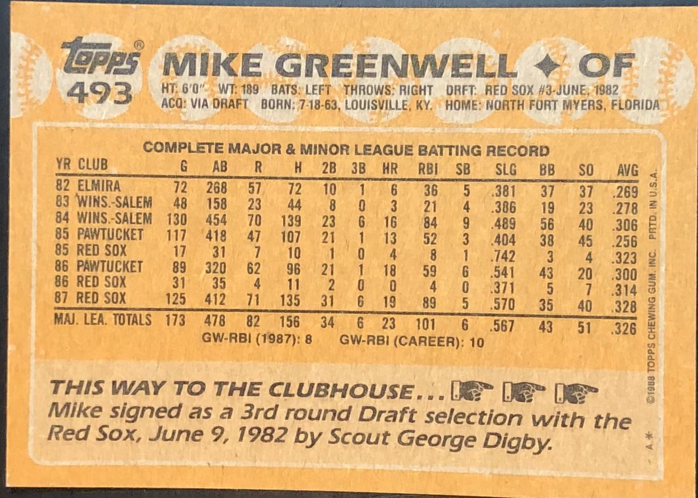 Lot 739 1988 TOPPS MIKE GREENWELL