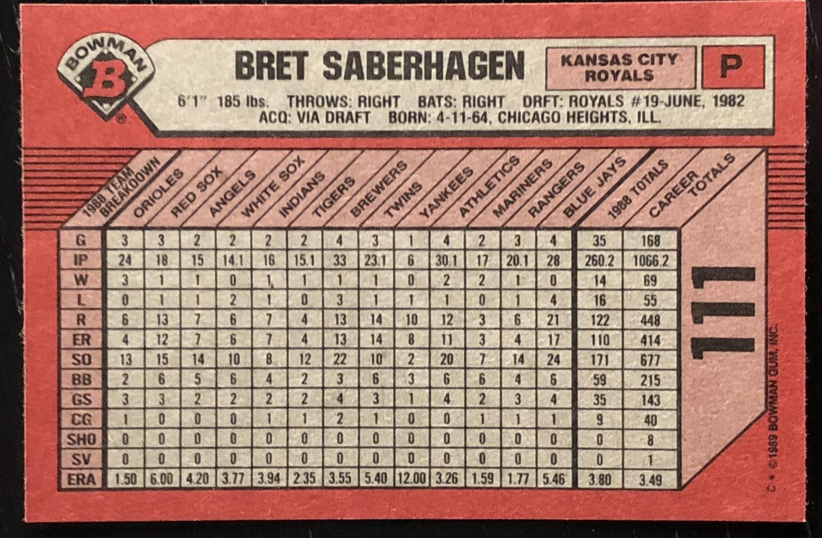 Lot 740 1989 BOWMAN BRET SABERHAGEN