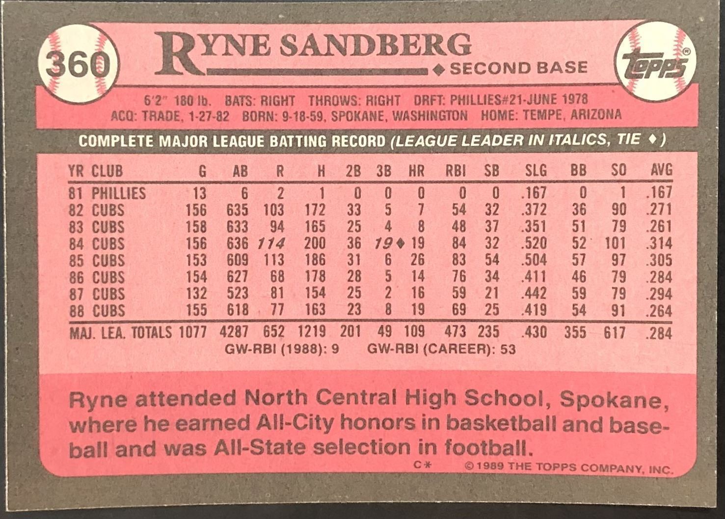 Lot 745 1989 TOPPS RYNE SANDBERG (HOF)