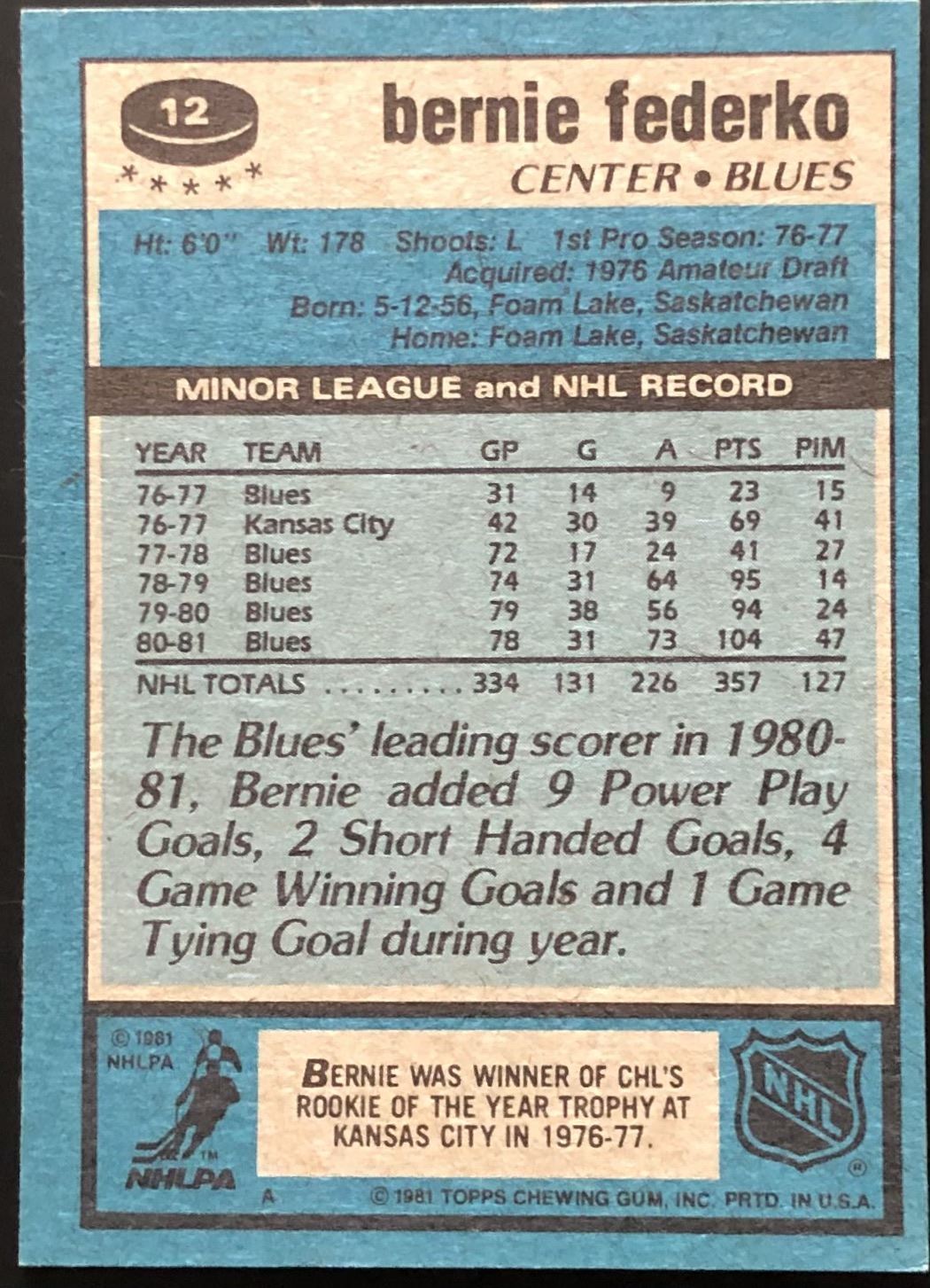 Lot 757 1981-82 TOPPS BERNIE FEDERKO (HOF)