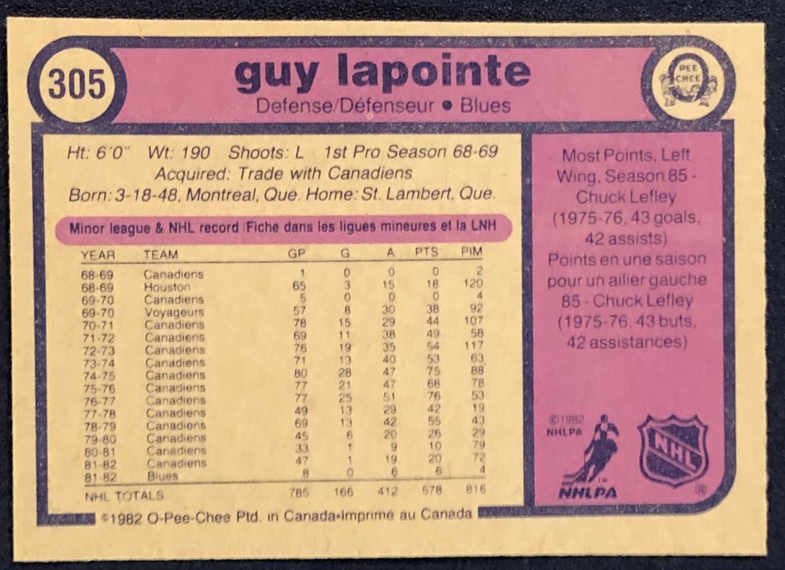 Lot 768 1982-83 O-PEE-CHEE GUY LAPOINTE (HOF)
