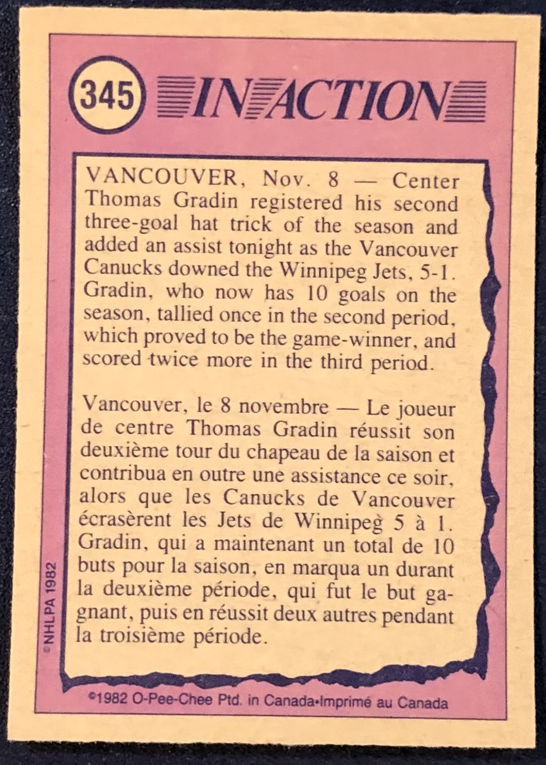 Lot 771 1982-83 O-PEE-CHEE THOMAS GRADIN