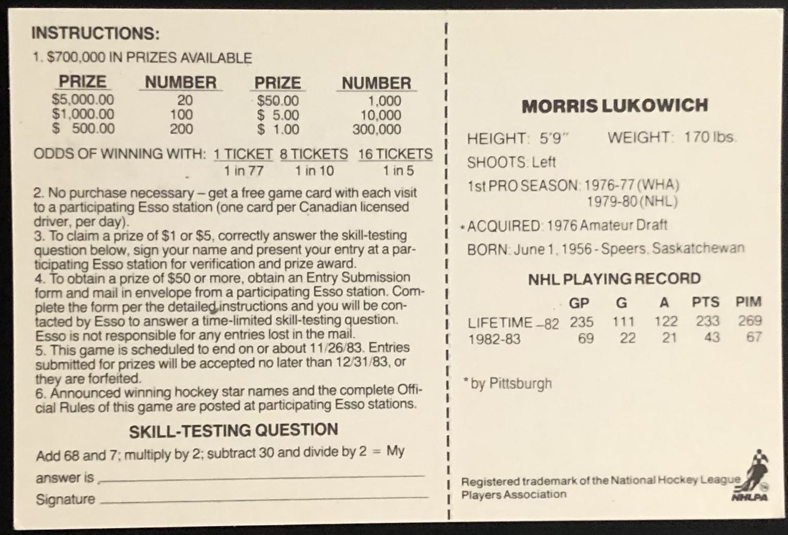 Lot 772 1983-84 ESSO MORRIS LUKOWICH