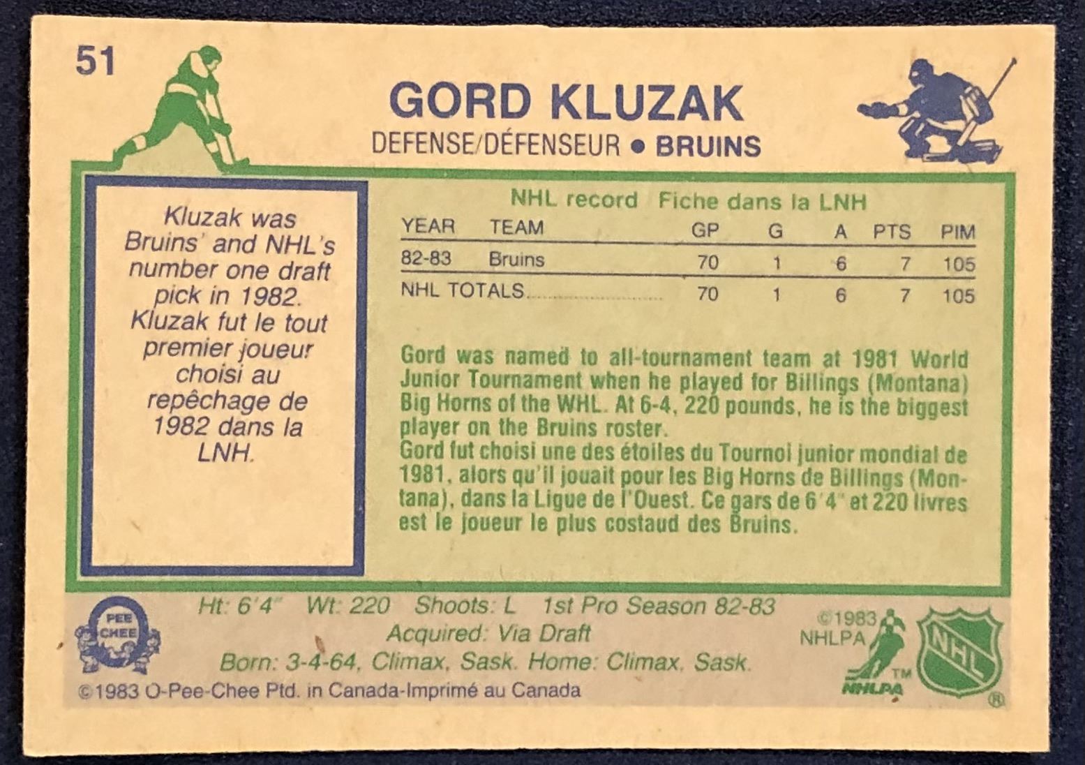 Lot 780 1983-84 O-PEE-CHEE GORD KLUZAK ROOKIE CARD