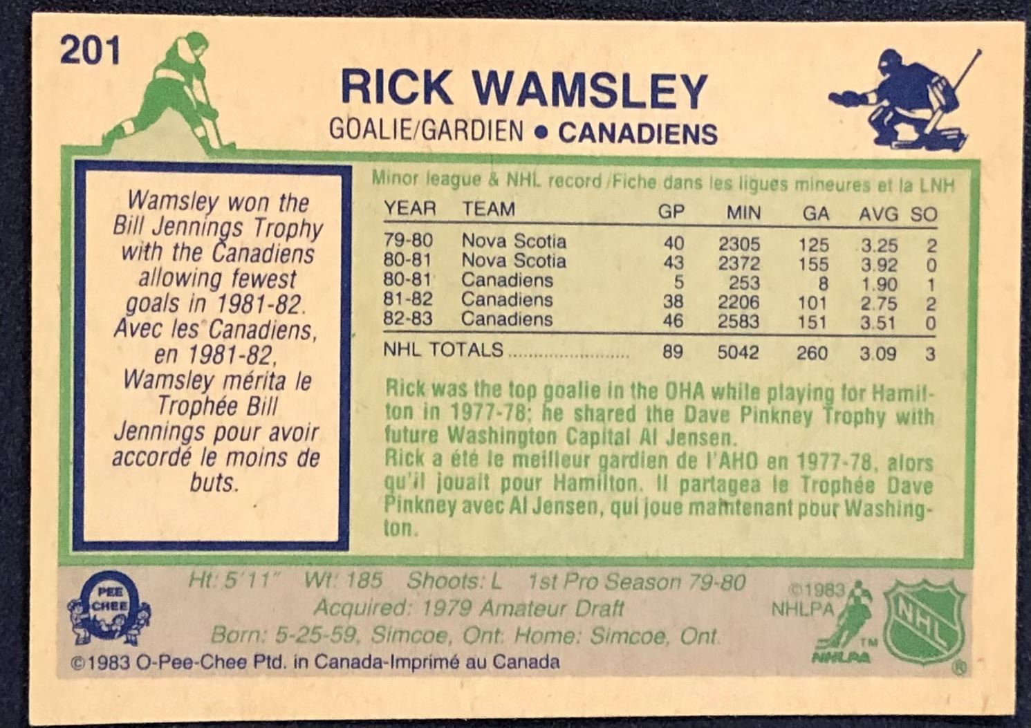 Lot 788 1983-84 O-PEE-CHEE RICK WAMSLEY