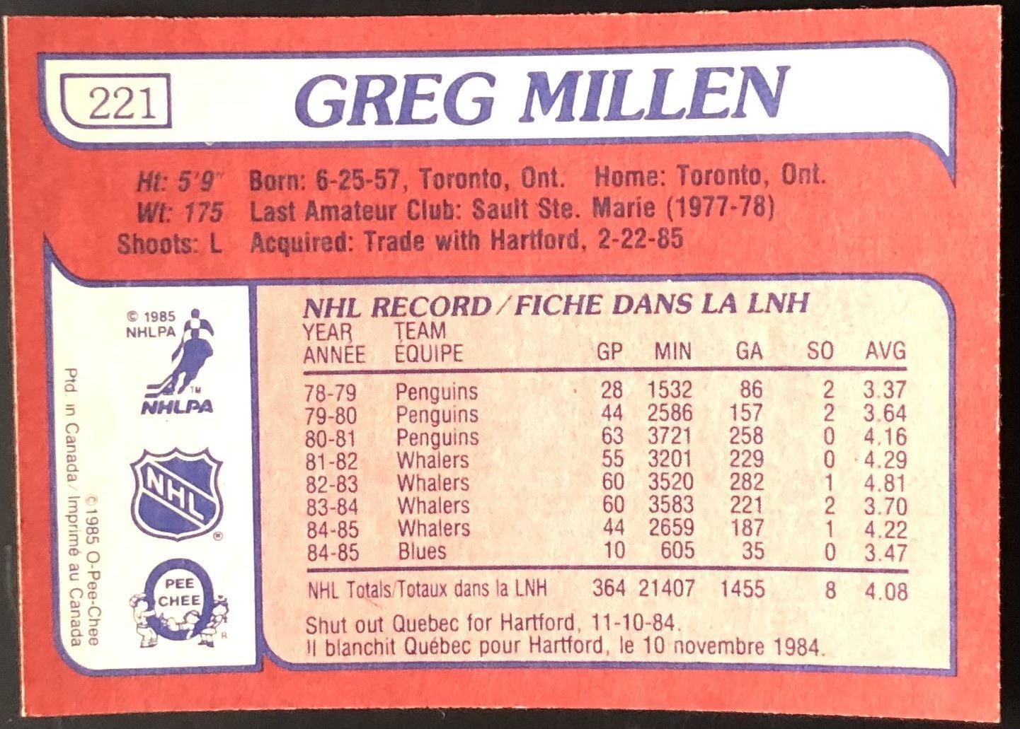 Lot 794 1985-86 O-PEE-CHEE GREG MILLEN