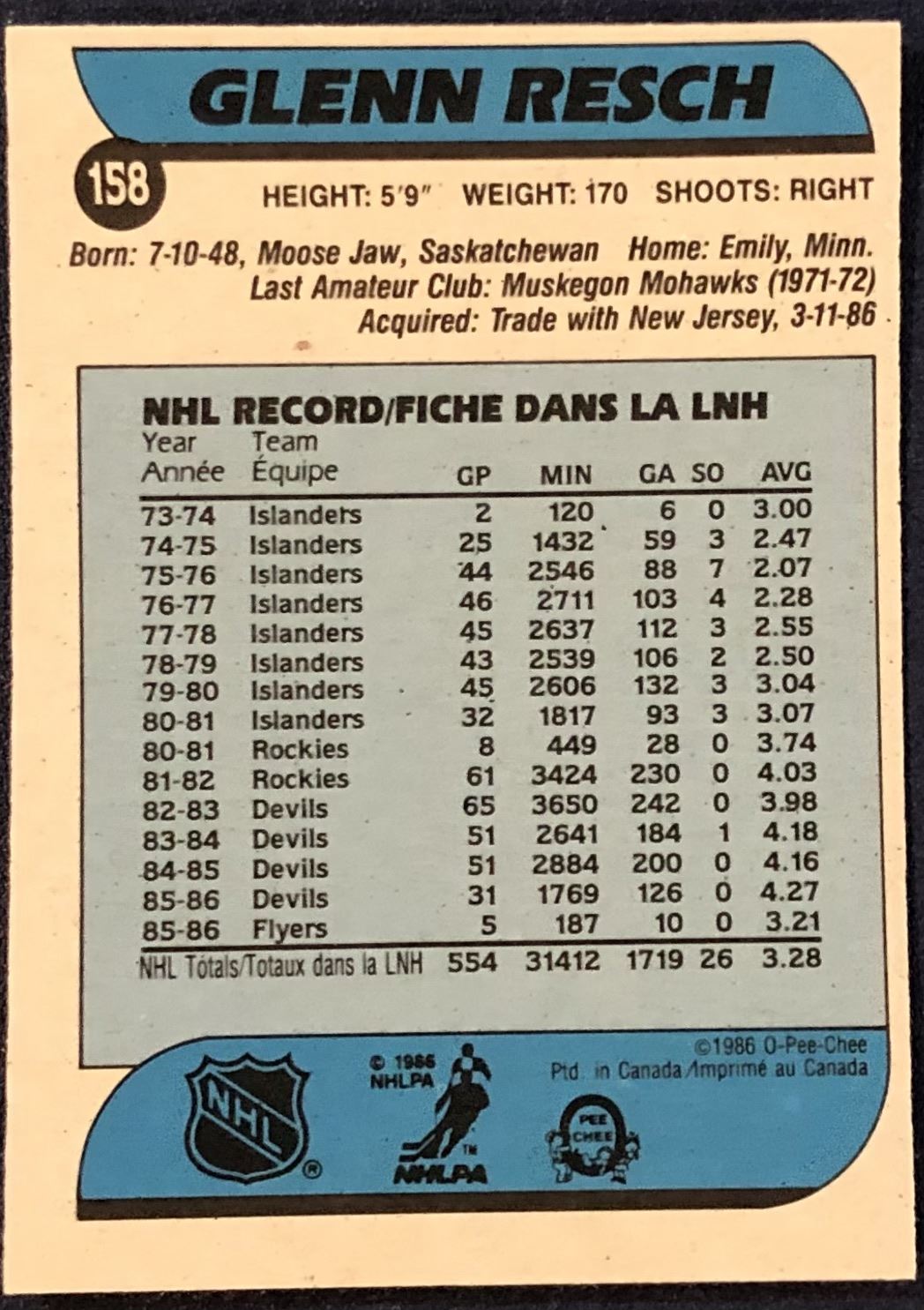 Lot 799 1986-87 O-PEE-CHEE CHICO RESCH