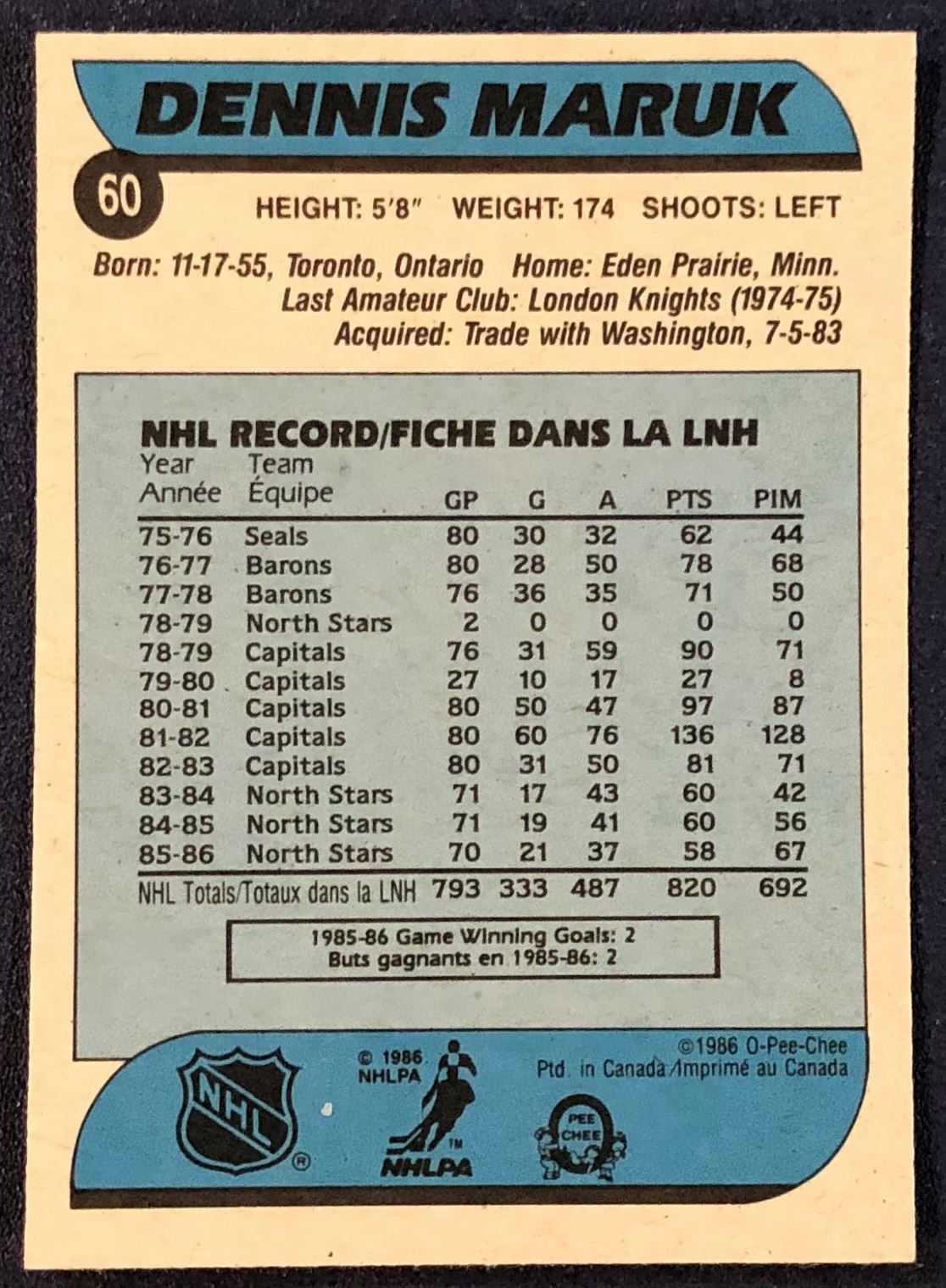 Lot 803 1986-87 O-PEE-CHEE DENNIS MARUK
