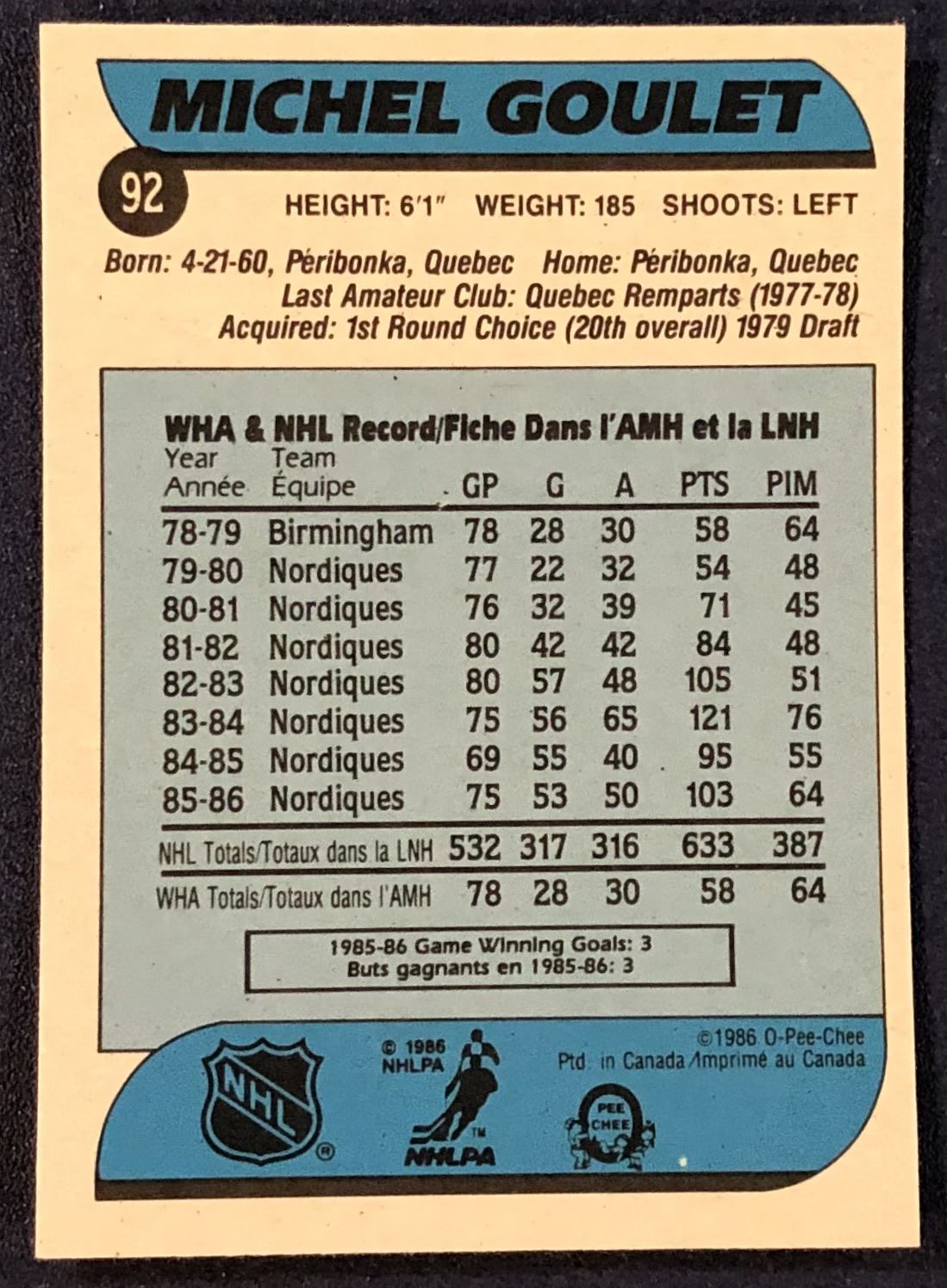 Lot 807 1986-87 O-PEE-CHEE MICHEL GOULET (HOF)