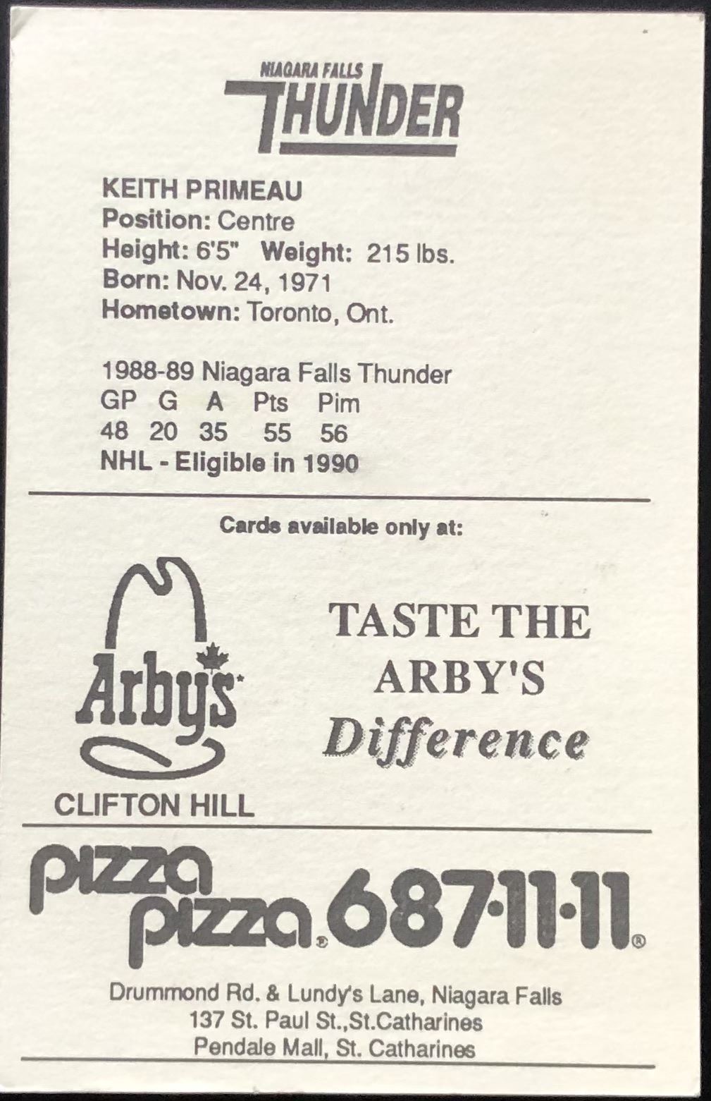 Lot 823 1989-90 NIAGARA FALLS THUNDER (OHL) POLICE - KEITH PRIMEAU