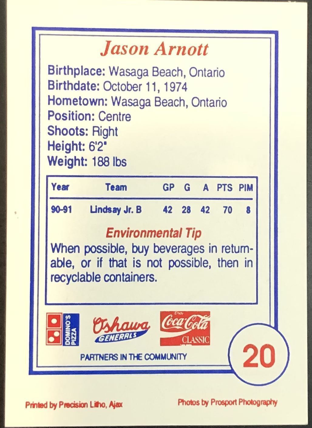 Card #20, Oshawa Generals Domino's Pizza team set CHL, OHL, hockey, NHL, rookie