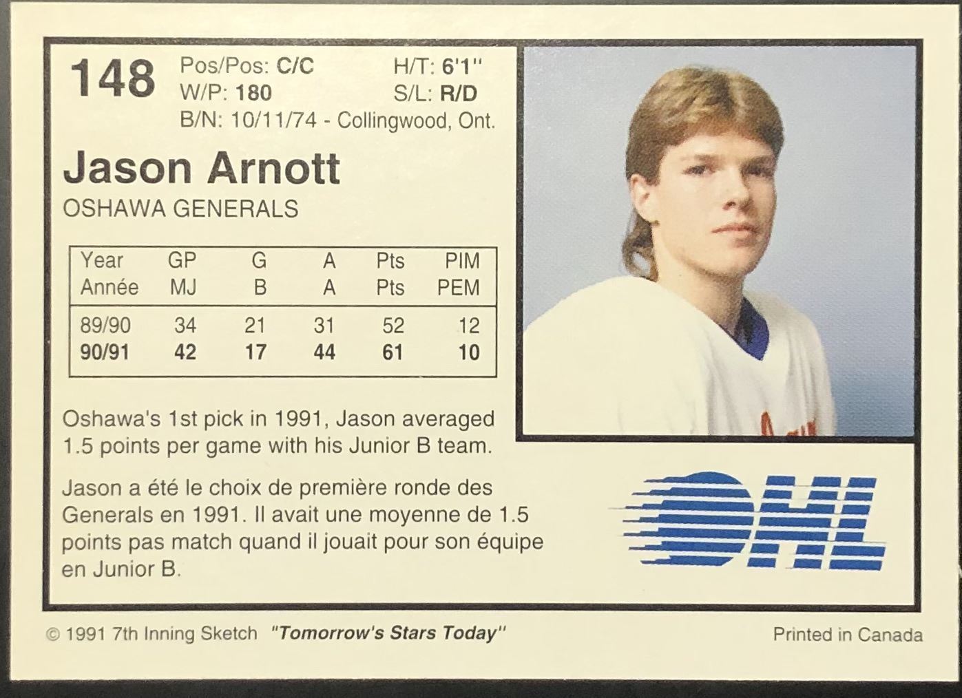 Lot 827 1991-92 JUNIOR CARD - JASON ARNOTT