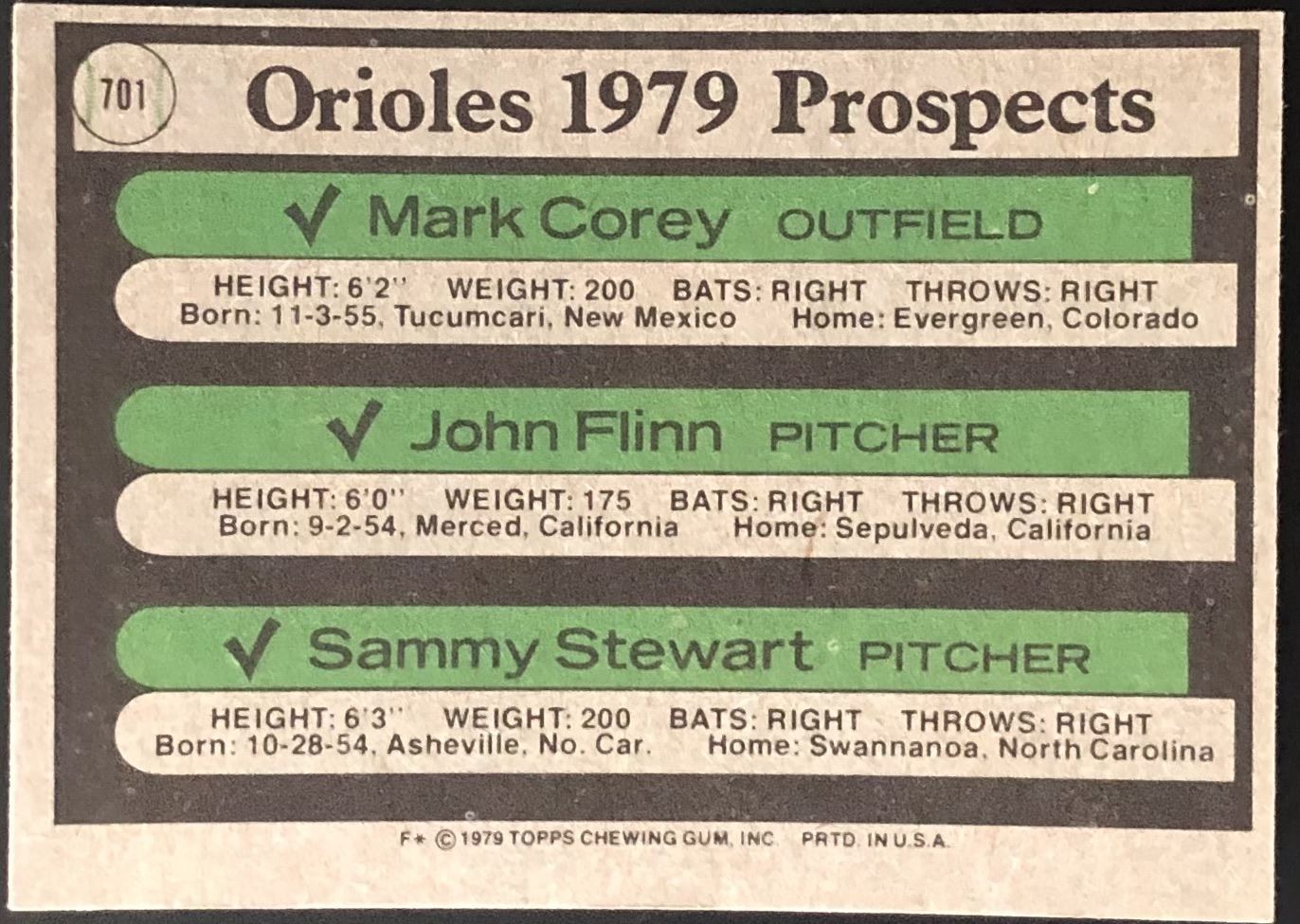 Lot 833 1979 TOPPS SAMMY STEWART ROOKIE CARD