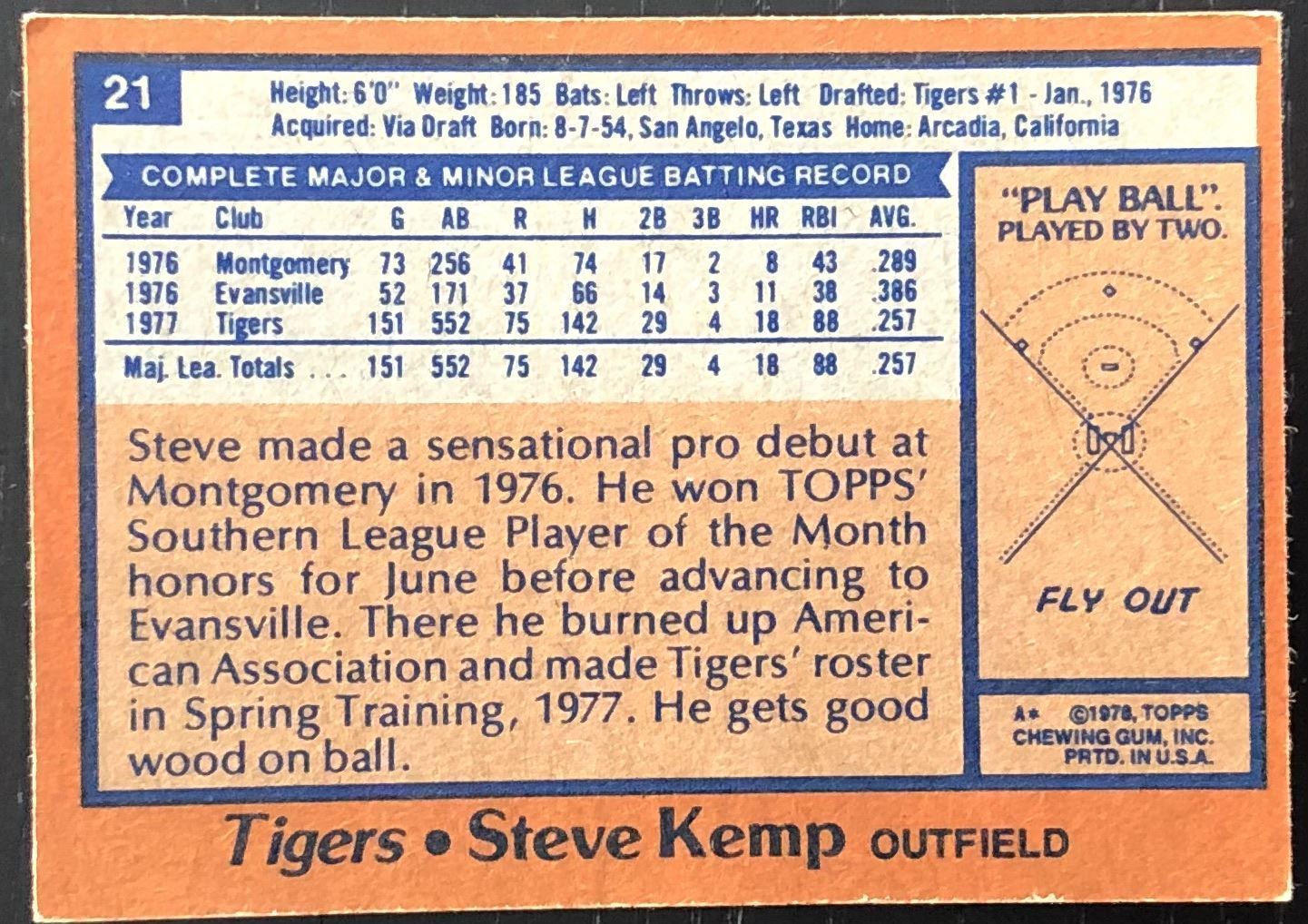 Lot 834 1978 TOPPS STEVE KEMP ROOKIE CARD