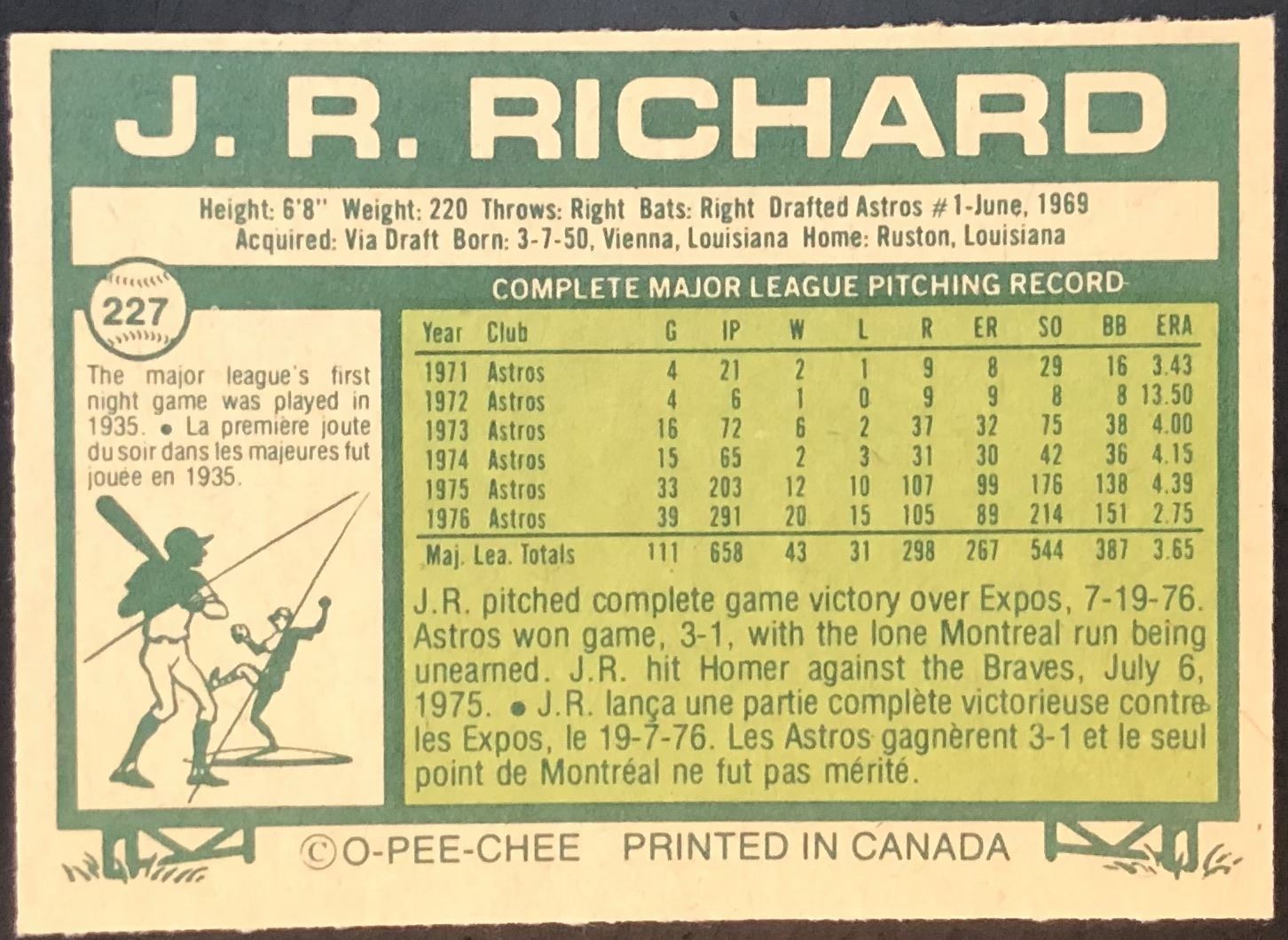 Lot 840 1977 O-PEE-CHEE J.R. RICHARD