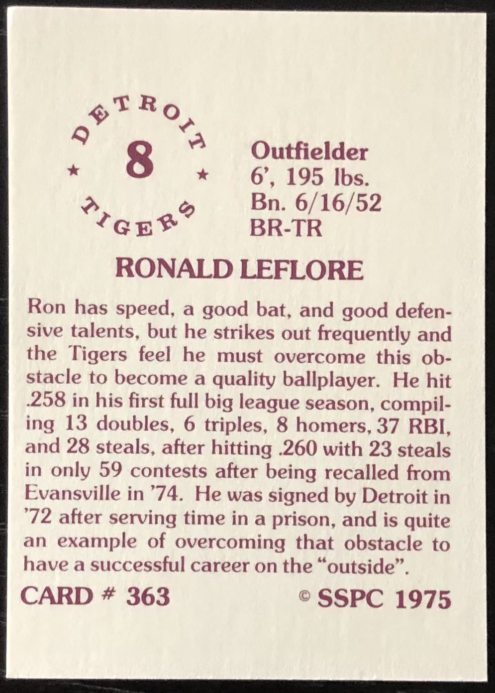 Lot 842 1975 SSPC BASEBALL RON LeFLORE