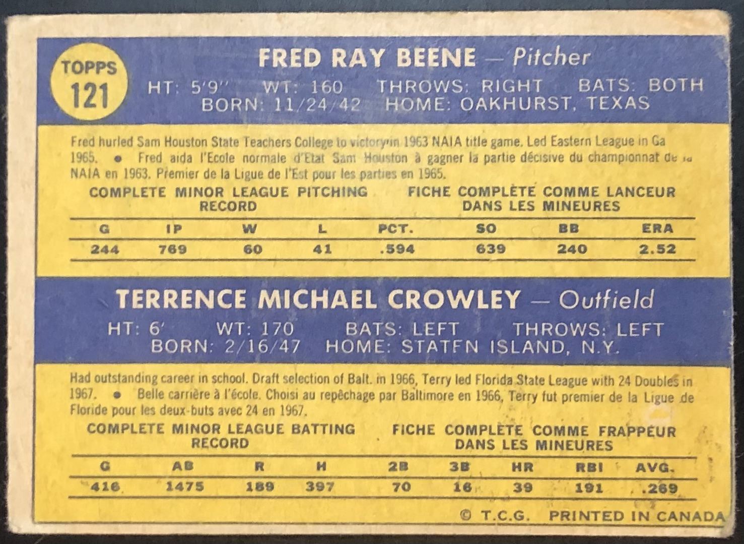 Lot 850 1970 O-PEE-CHEE TERRY CROWLEY ROOKIE CARD
