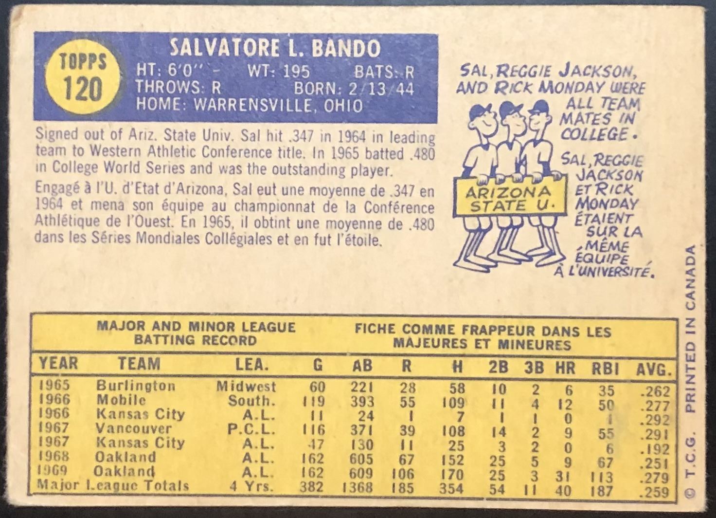 Lot 851 1970 O-PEE-CHEE SAL BANDO