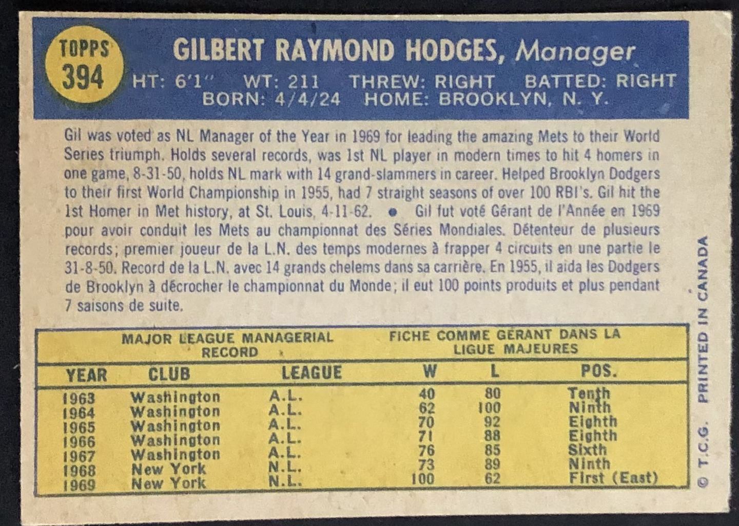 Lot 853 1970 O-PEE-CHEE GIL HODGES (HOF)