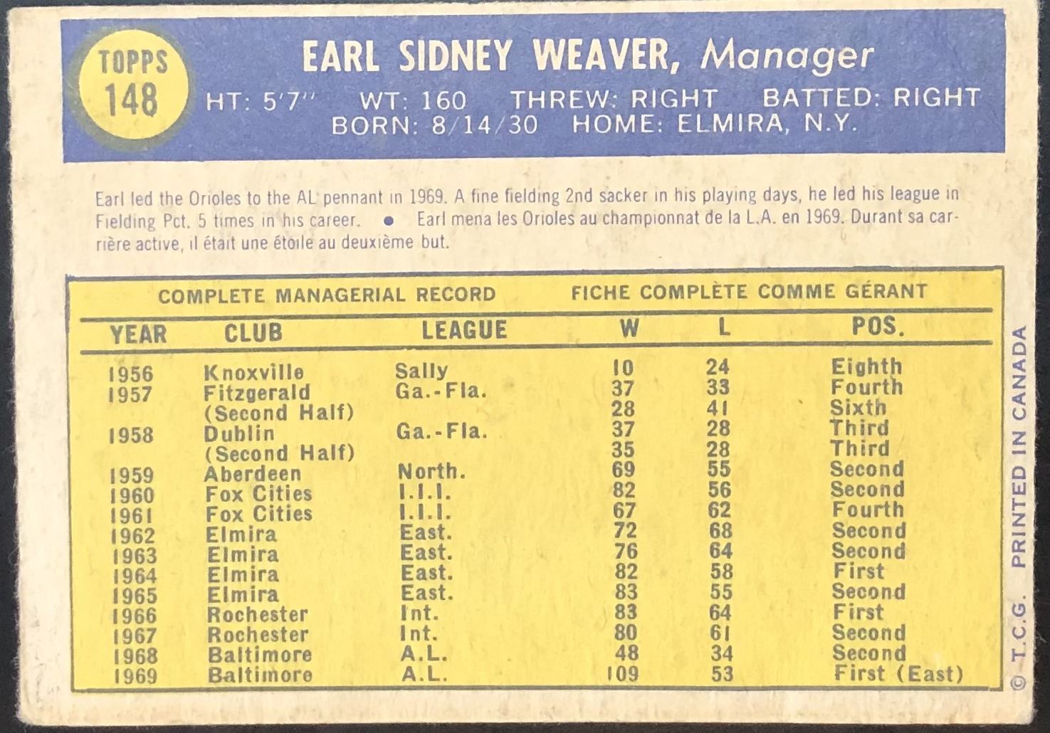 Lot 854 1970 O-PEE-CHEE EARL WEAVER (HOF)