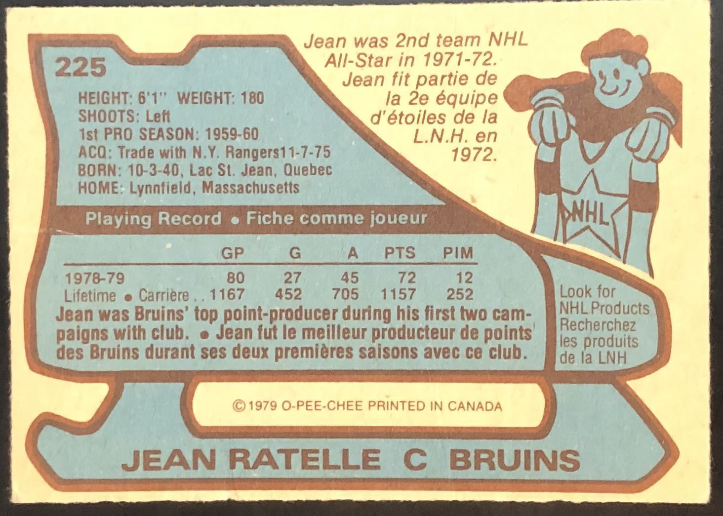 Lot 883 1979-80 O-PEE-CHEE JEAN RATELLE (HOF)