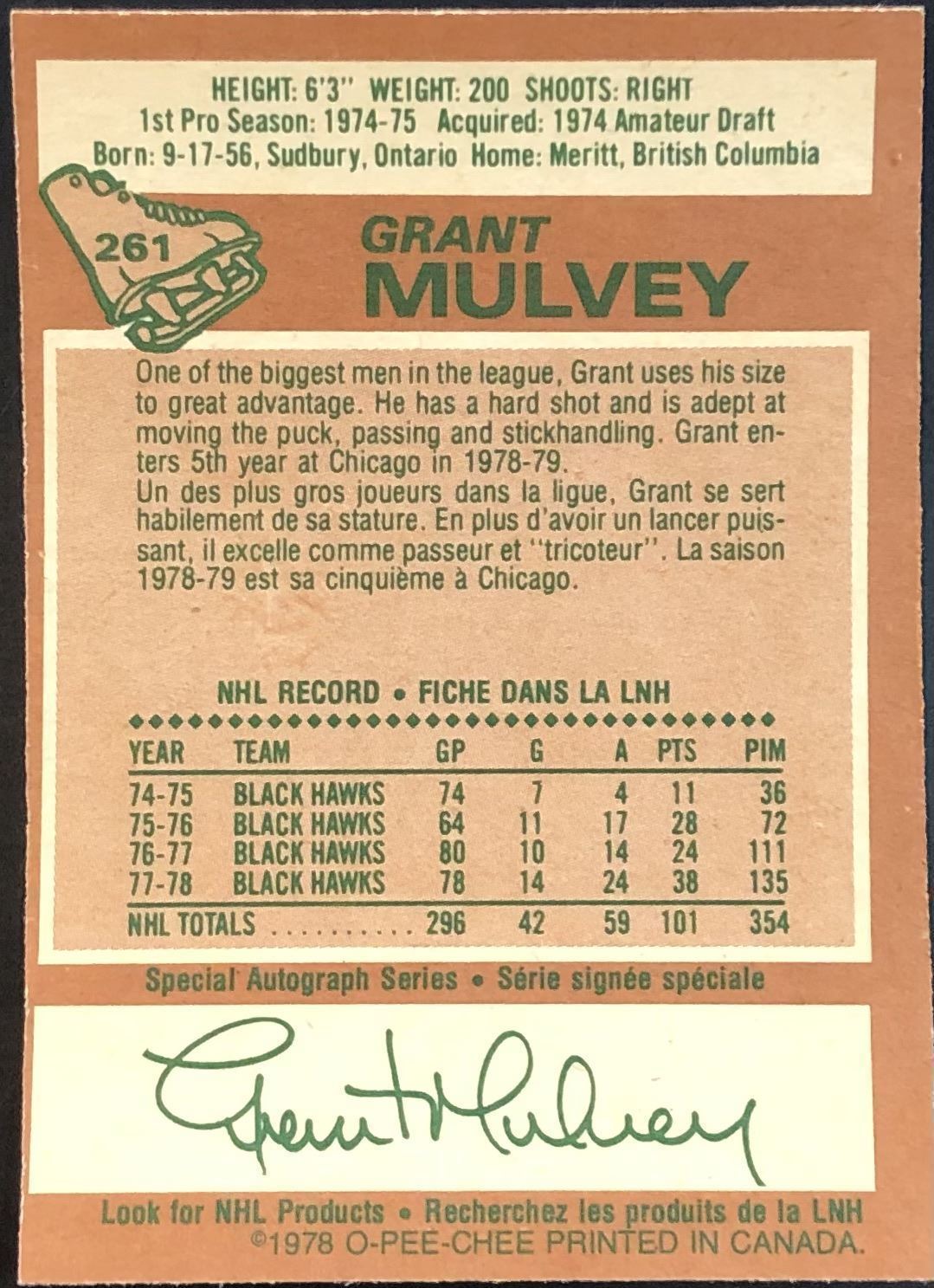 Lot 886 1978-79 O-PEE-CHEE GRANT MULVEY
