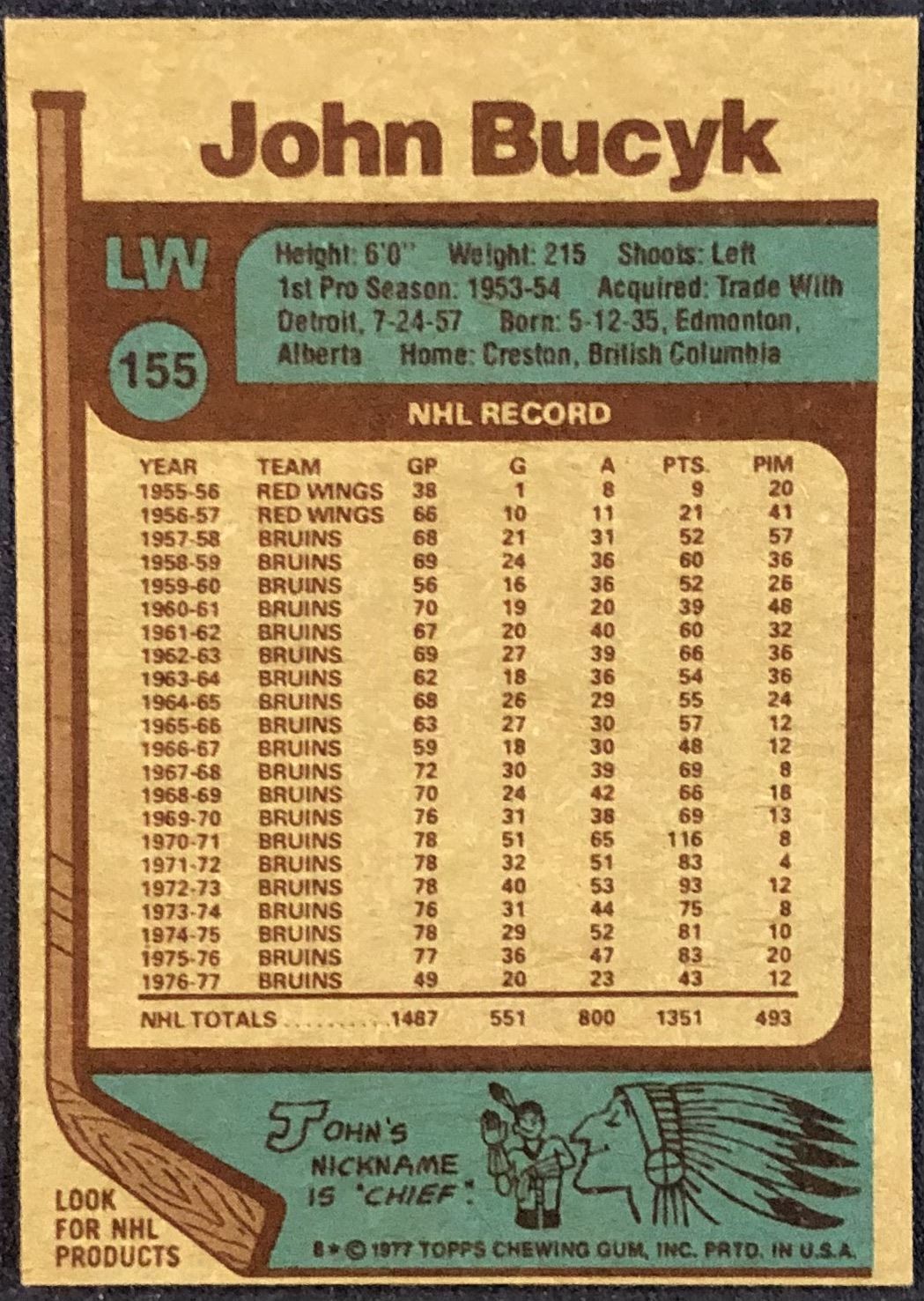Lot 892 1977-78 TOPPS JOHN BUCYK (HOF)