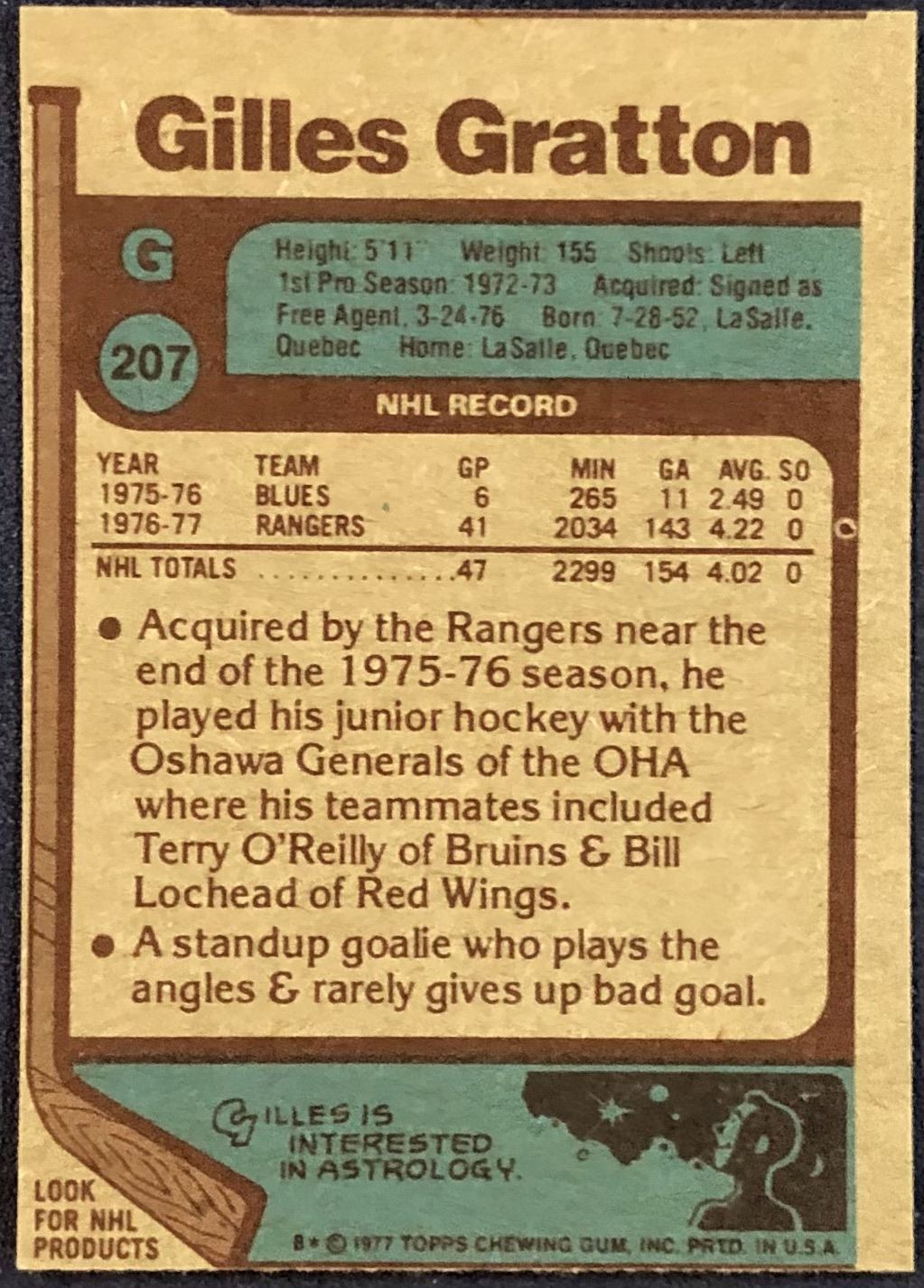 Lot 896 1977-78 TOPPS GILLES GRATTON ROOKIE CARD