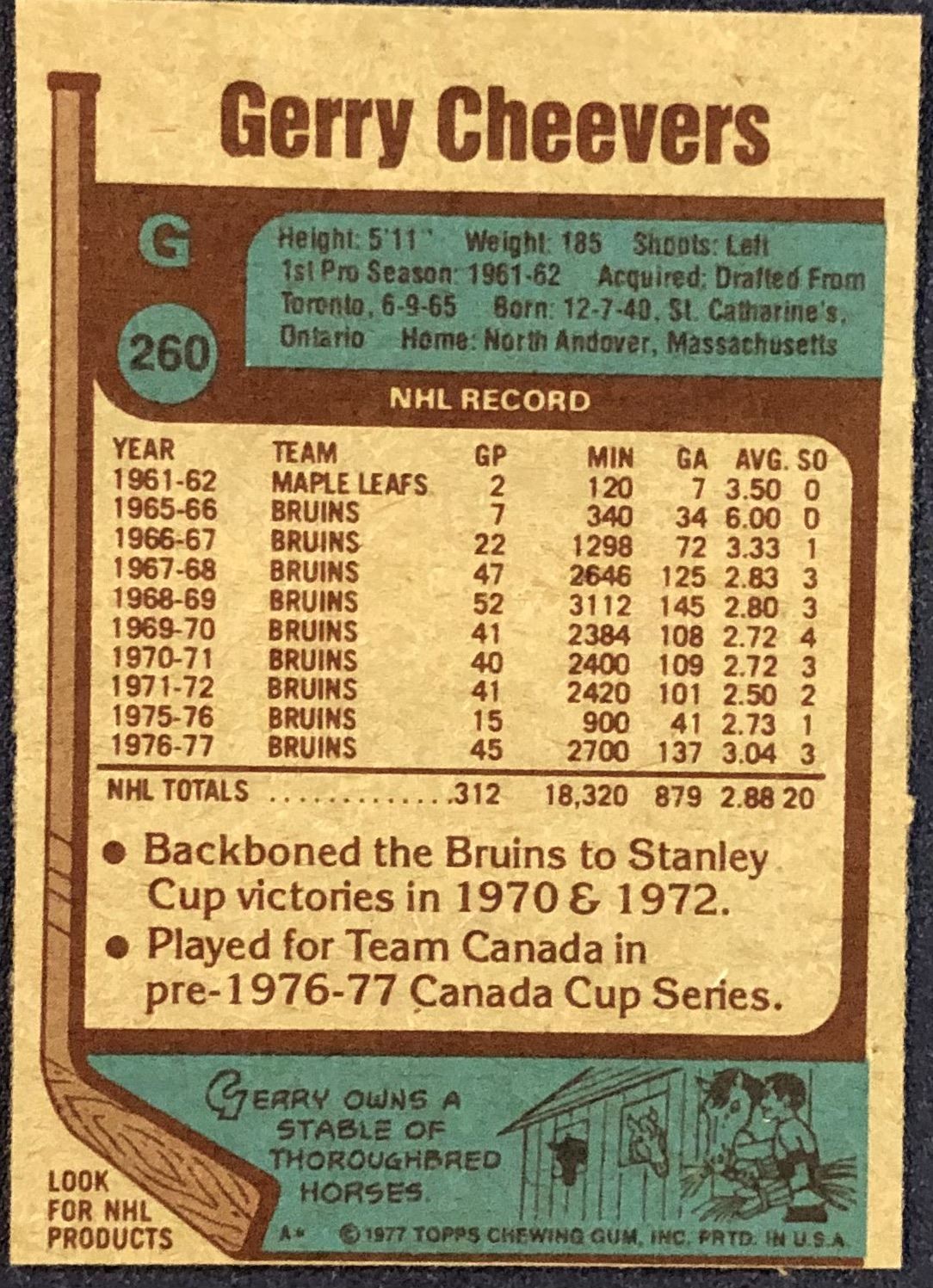 Lot 897 1977-78 TOPPS GERRY CHEEVERS (HOF)