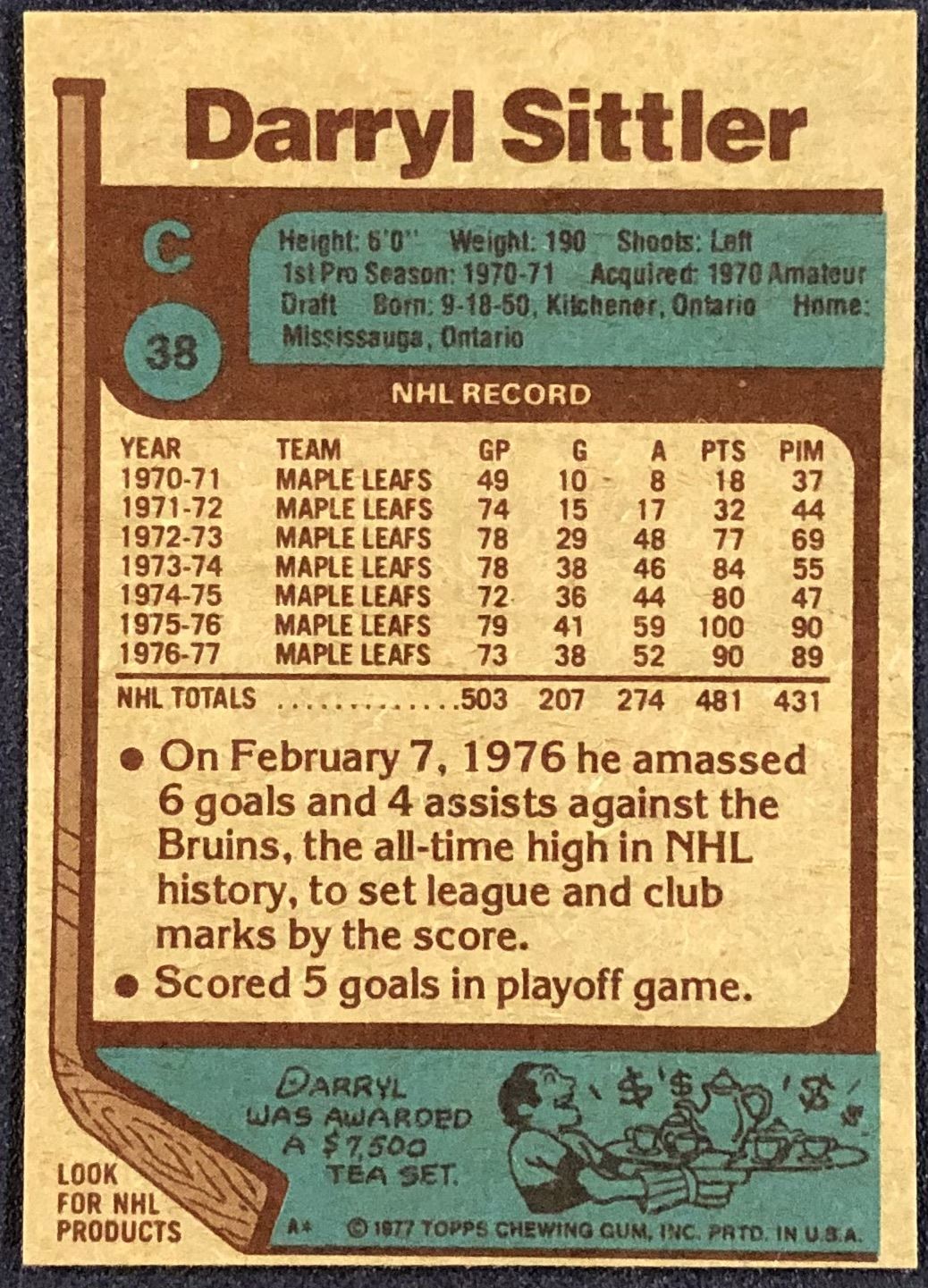 Lot 900 1977-78 TOPPS DARRYL SITTLER (HOF)